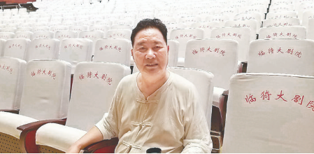 ◀9月13日上午,李树建与同事在临猗关汉卿大剧院舞台上排戏。