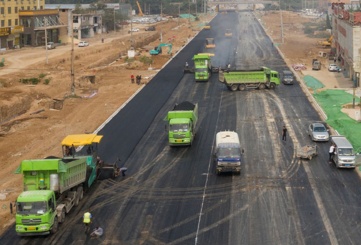 ▲解放北路摊铺沥青现场