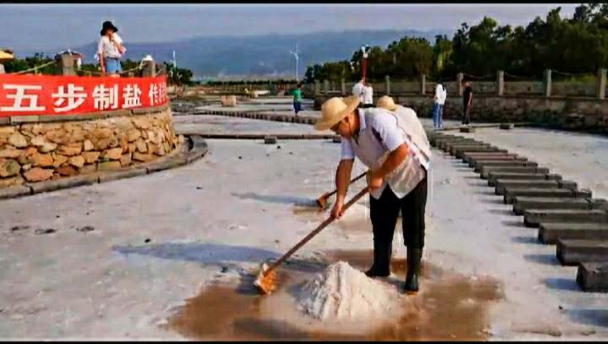 工人现场演示“五步产盐法”