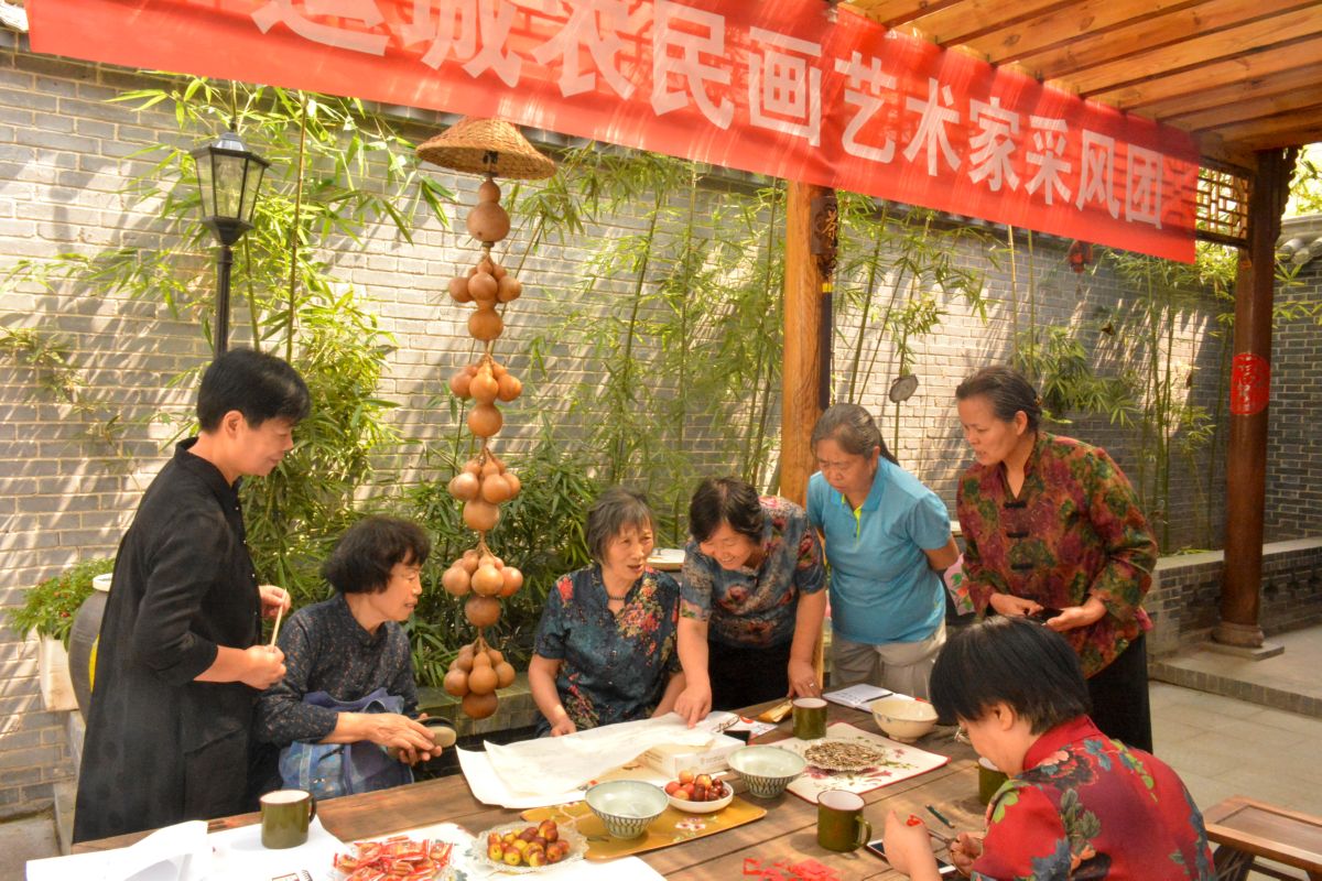 为办好运城市第二届农民画展览,助力2020年中国农民丰收节,9月12日,运城市民间文艺家协会党支部、农民画艺委会和运城自在茶舍组织农民画艺术家,深入夏县水头镇曹张村采风。