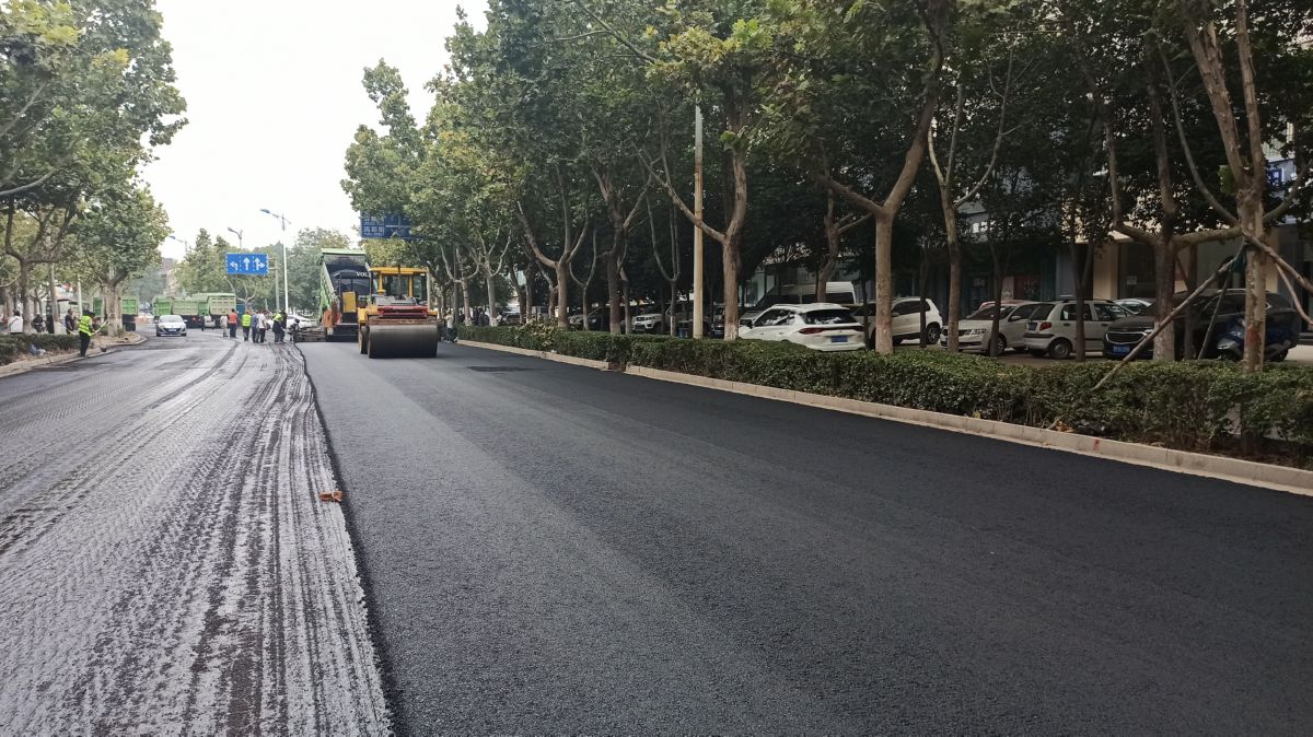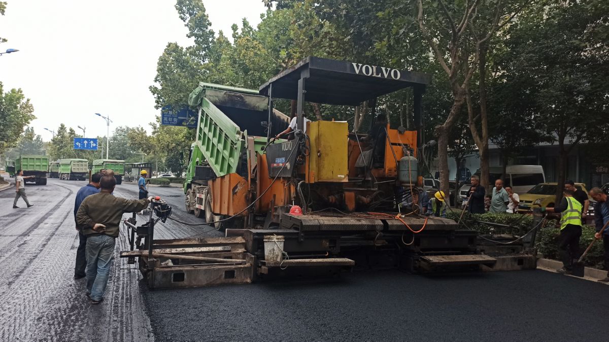 ▲9月14日,在市区潞村街,摊铺机摊铺沥青路面。 祁克宁 摄