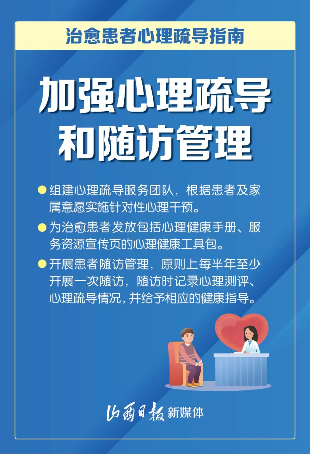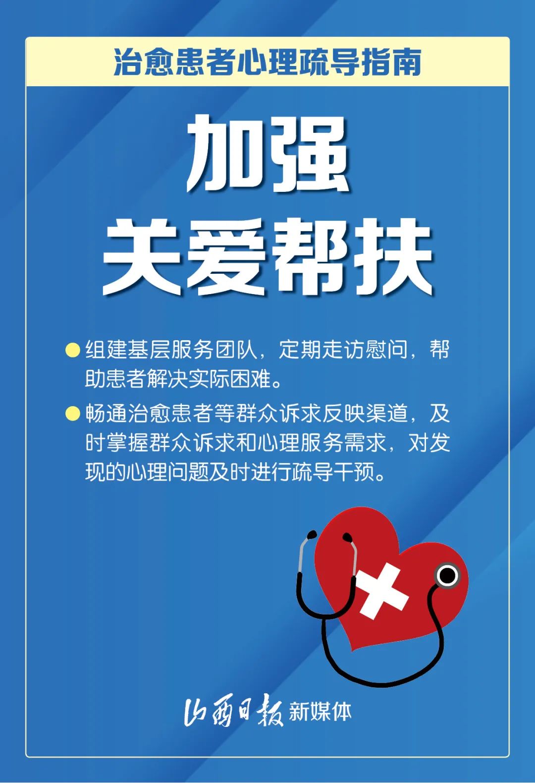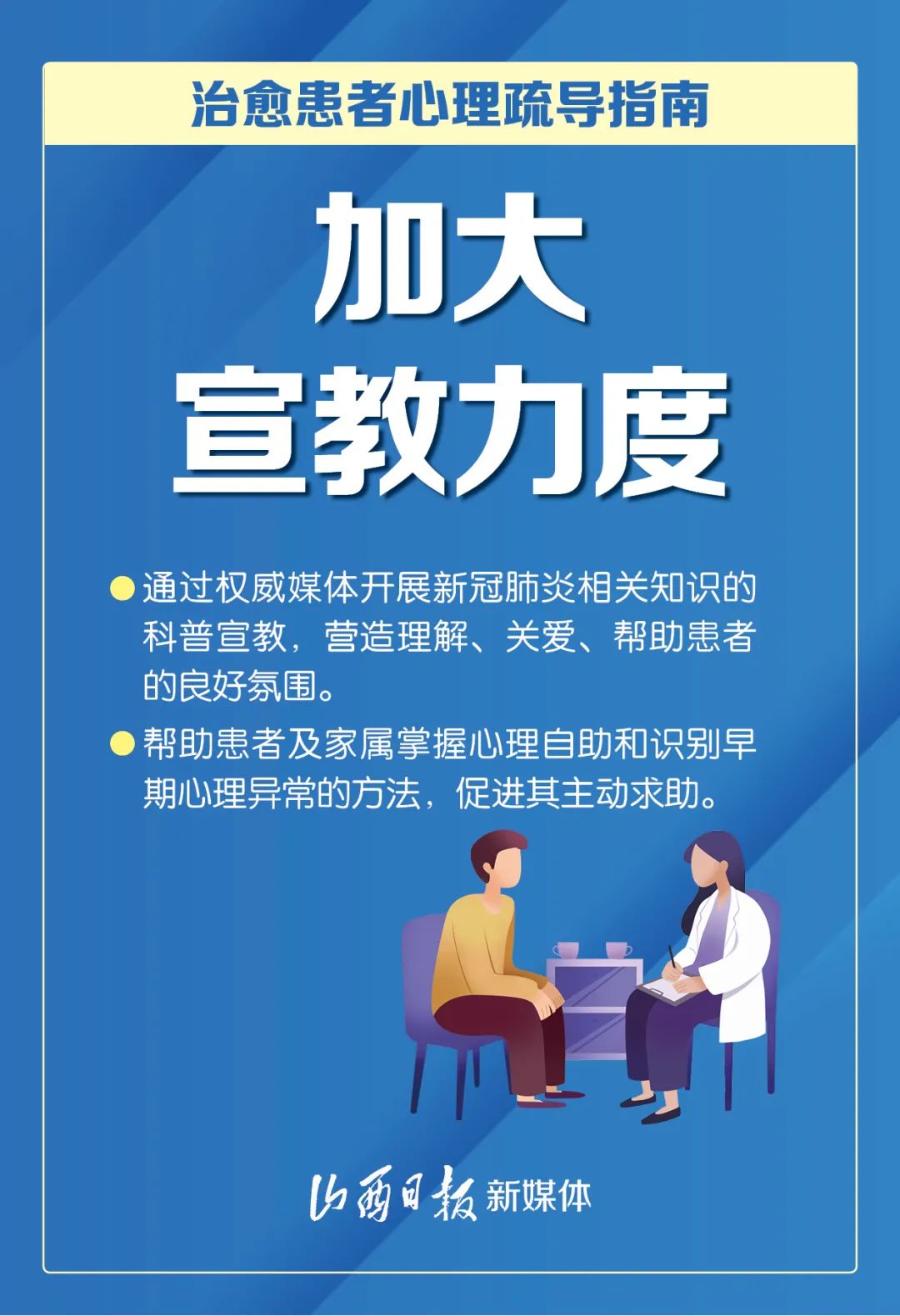 近日,国务院应对新冠肺炎疫情联防联控机制综合组印发《新冠肺炎疫情防控常态化下治愈患者心理疏导工作方案》,以促进治愈患者身心全面康复为目标,从7方面入手,进一步加强治愈患者心理疏导工作。