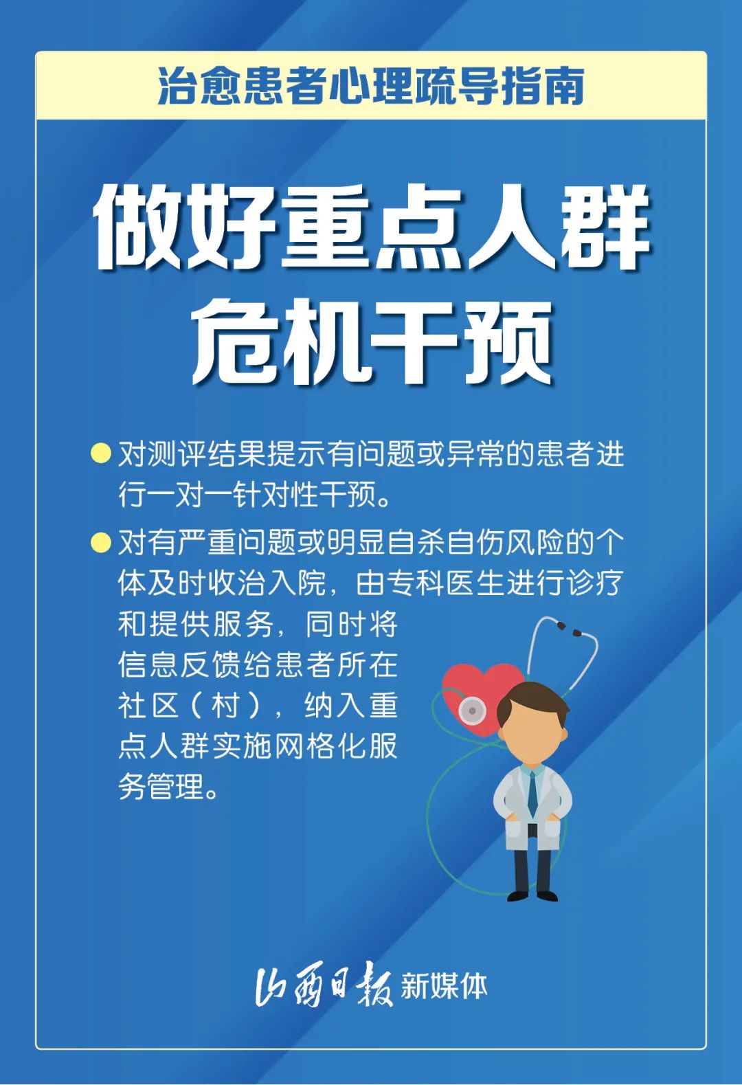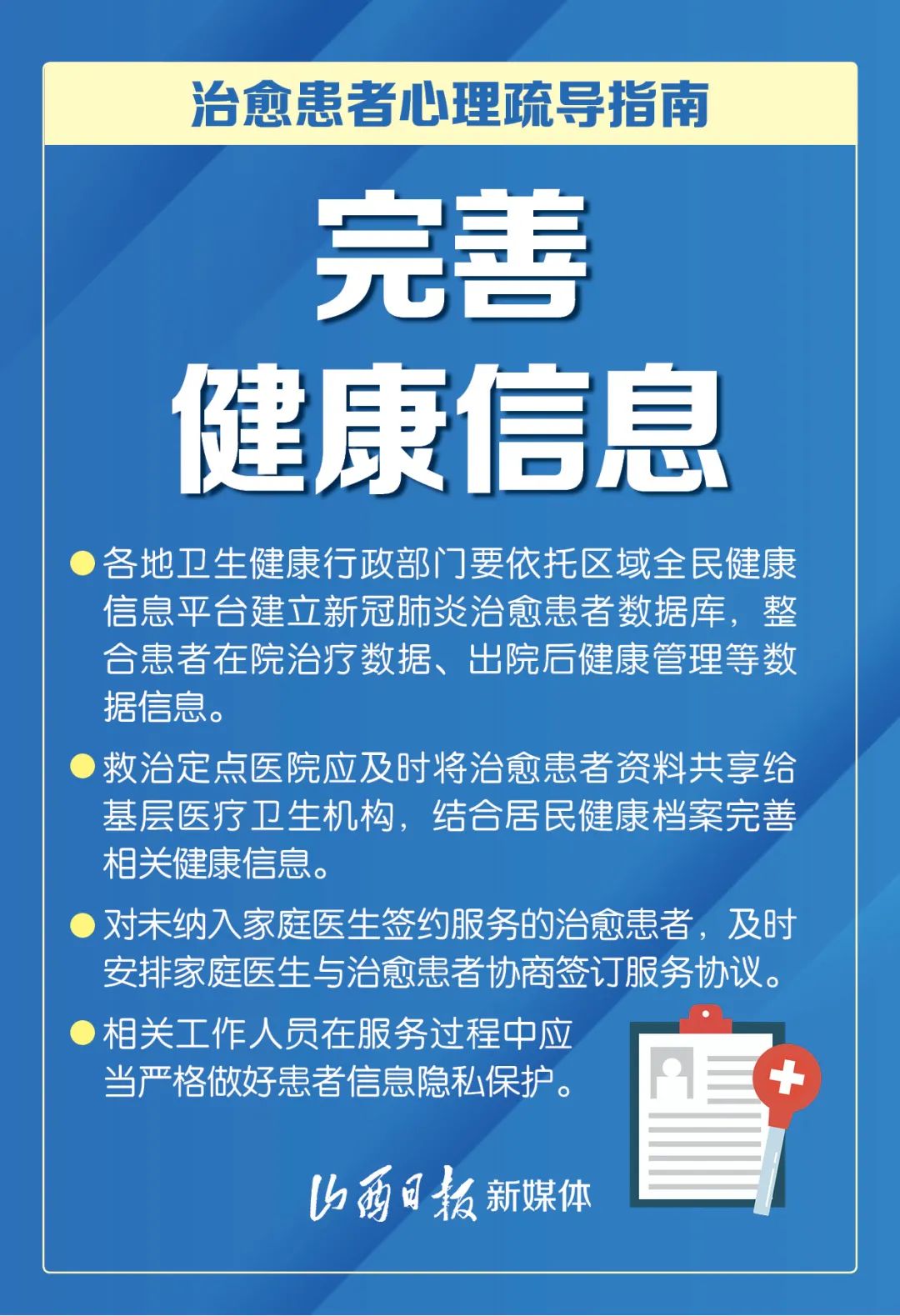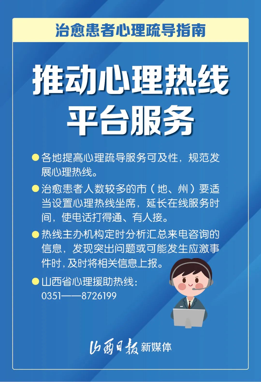 近日,国务院应对新冠肺炎疫情联防联控机制综合组印发《新冠肺炎疫情防控常态化下治愈患者心理疏导工作方案》,以促进治愈患者身心全面康复为目标,从7方面入手,进一步加强治愈患者心理疏导工作。