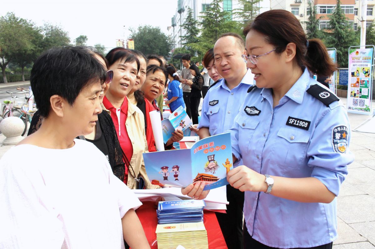 9月14日,闻喜县司法局工作人员向群众宣传网络安全知识。