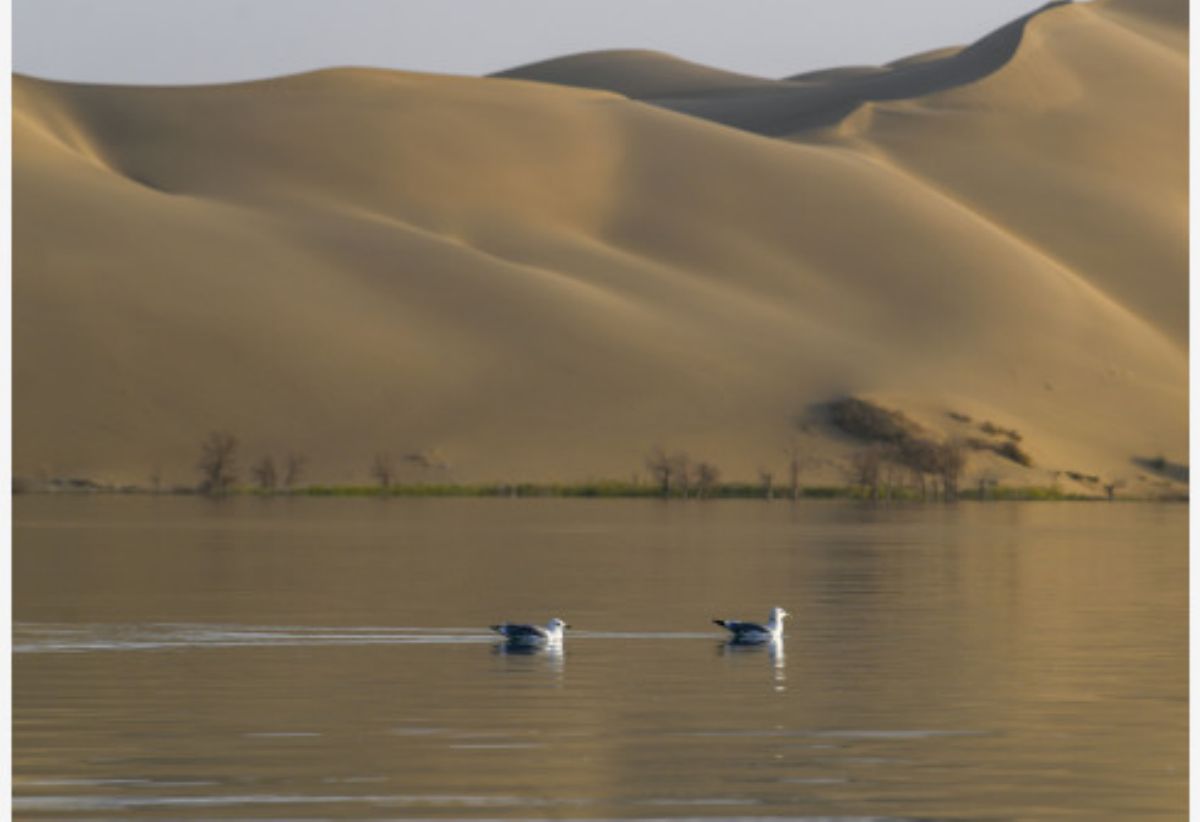 9月,位于新疆巴音郭楞蒙古自治州尉犁县境内的罗布湖秋韵渐浓,景色如画。 新华社记者 赵戈 摄