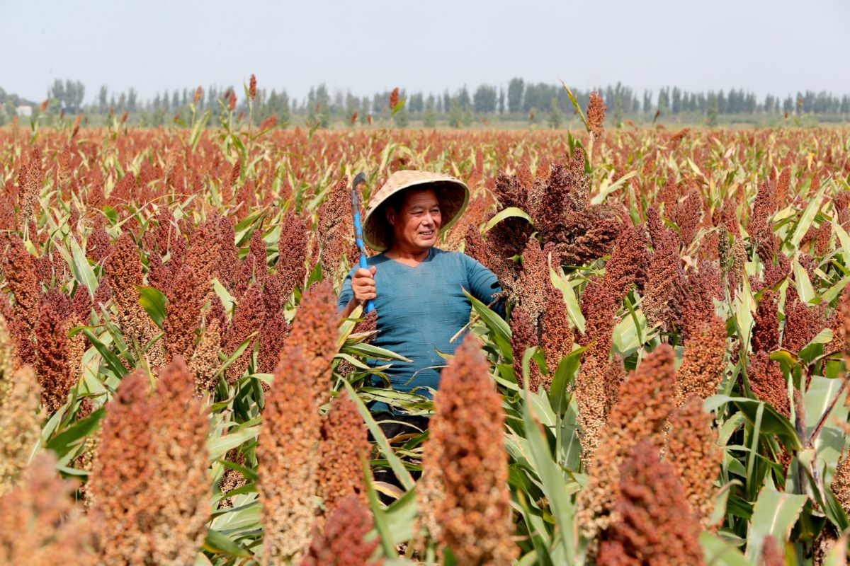 卫长生是常乐村村民,今年他与另一名合伙人承包了该村1200余亩盐碱地。经过科学管理、精心经营,如今,高粱成熟红满天,一派丰收景象,卫长生的脸上也露出了笑颜。 记者 卫行智 摄