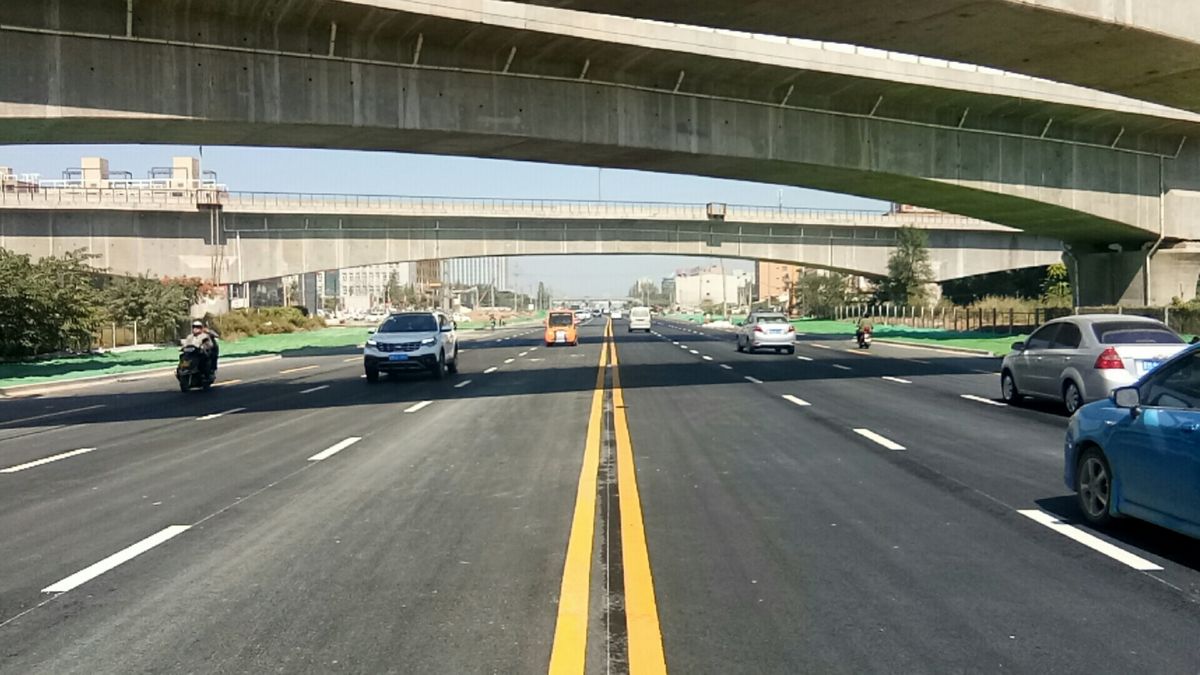 ▲9月18日,在解放路引黄桥至运城北高速口连接线段,车辆行驶在新铺的道路上。 祁克宁 摄