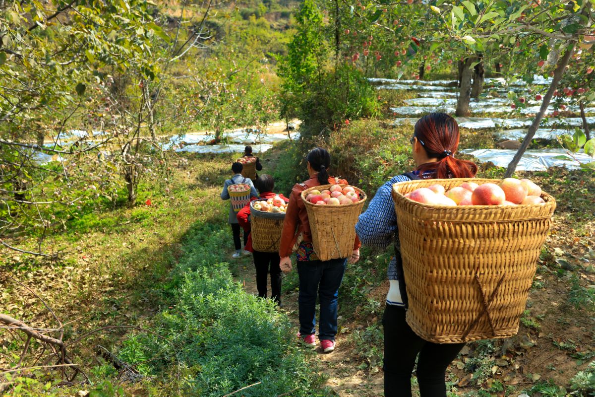 ▲山里苹果竹篓背(摄于阳城镇江口村)