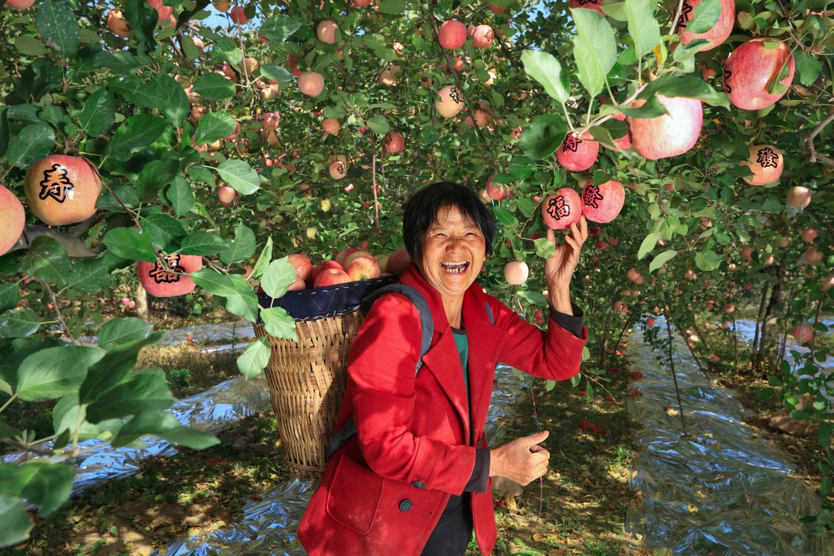▲“幸福”“平安”挂枝头(摄于学张乡水峪村)