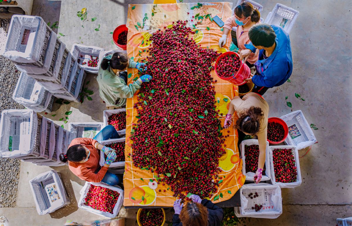 ▲樱桃喜获大丰收(摄于南磑镇老庄村)
