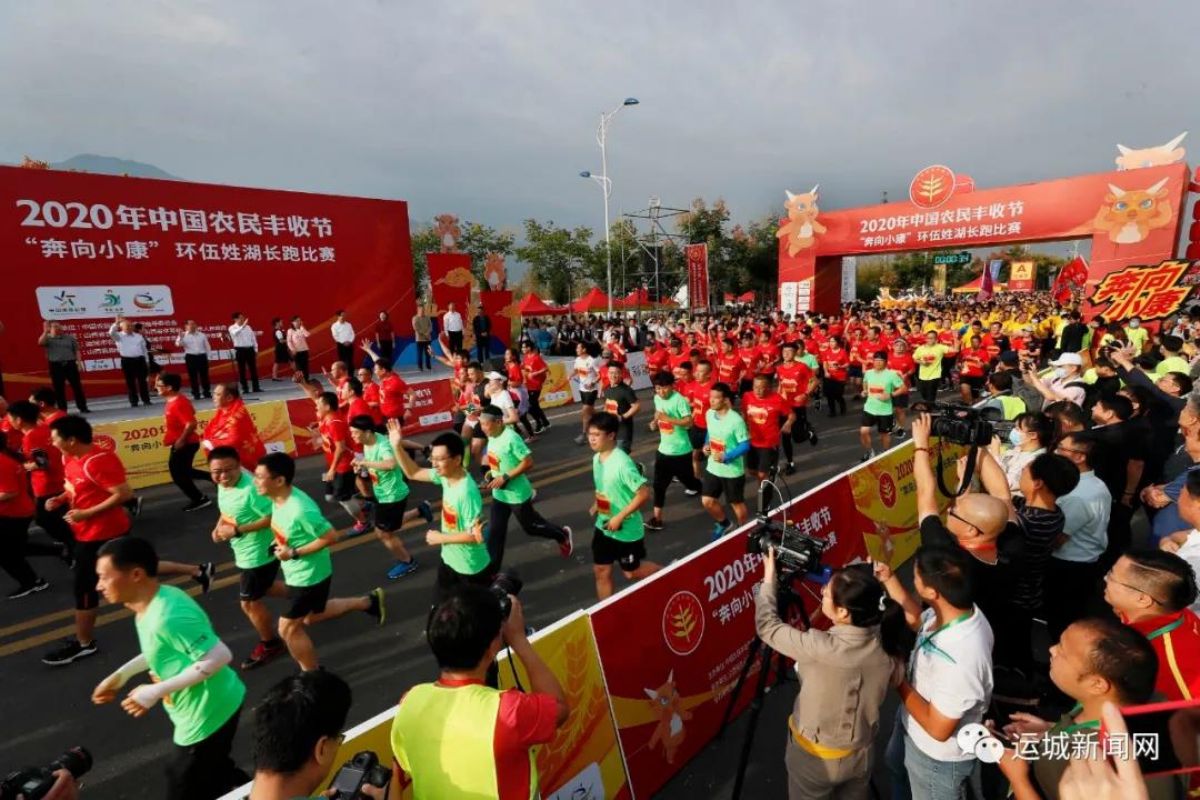 本报讯(记者 张 越)秋风送爽庆丰收,瓜果飘香迎小康。9月20日,2020年中国农民丰收节“奔向小康”环伍姓湖长跑比赛在永济市伍姓湖湿地公园盛大起跑。农业农村部市场信息司司长唐珂出席开幕式并讲话。省农业农村厅副厅长赵文志、省体育局副局长杜荣出席开幕式。市长储祥好致欢迎词。副市长卫再学、市政府秘书长张保安出席开幕式。