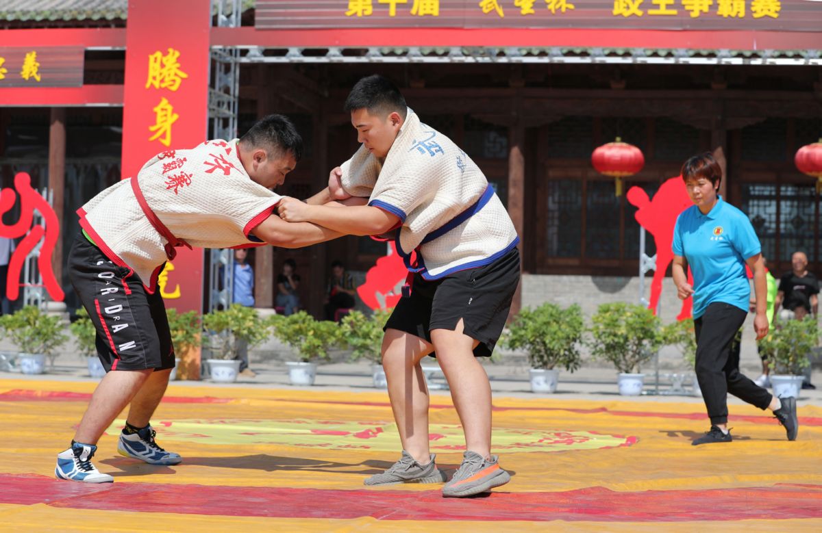 山西省第七届跤坛争霸赛(运城站)暨第十届“武圣杯”跤王争霸赛比赛现场。 记者 卫行智 摄