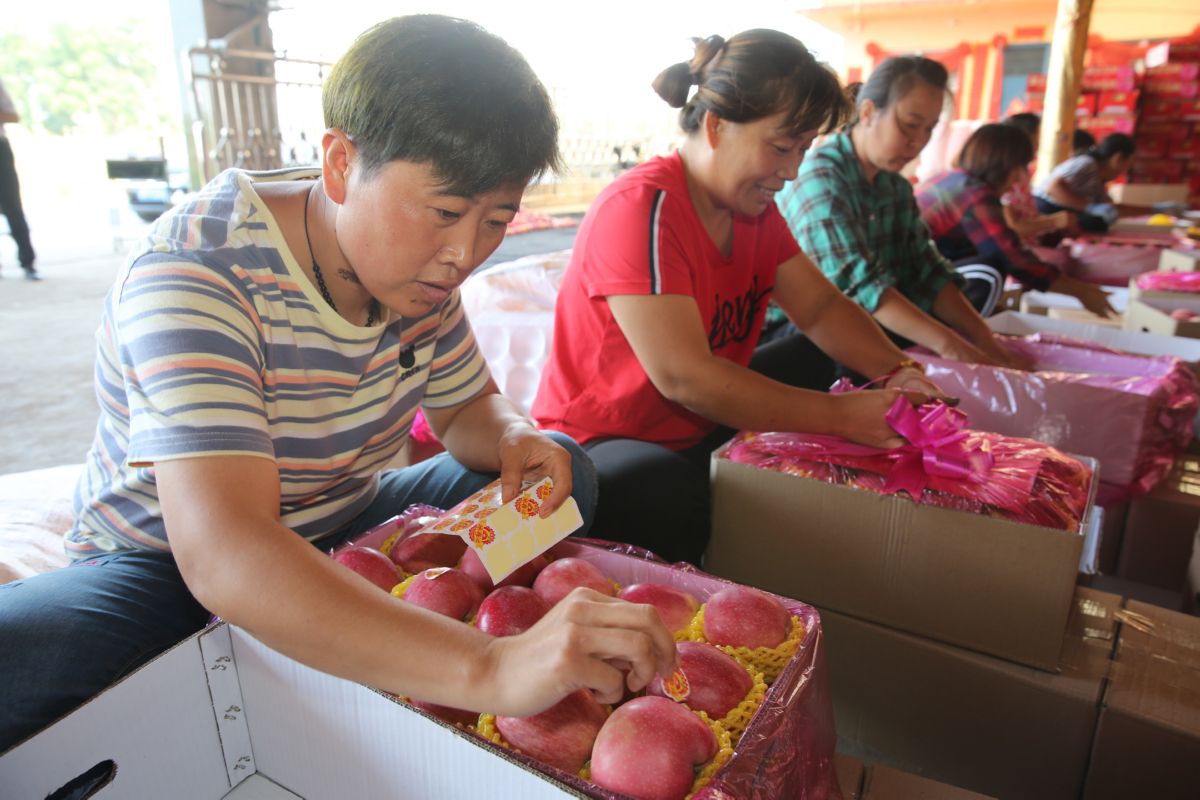 李桂莲采摘下来的苹果要送到离果园不远的果品合作社。在合作社里,苹果经过检验、过磅、分拣、装箱后,有的发往全国各地,有的登上“国际快车”走出国门。