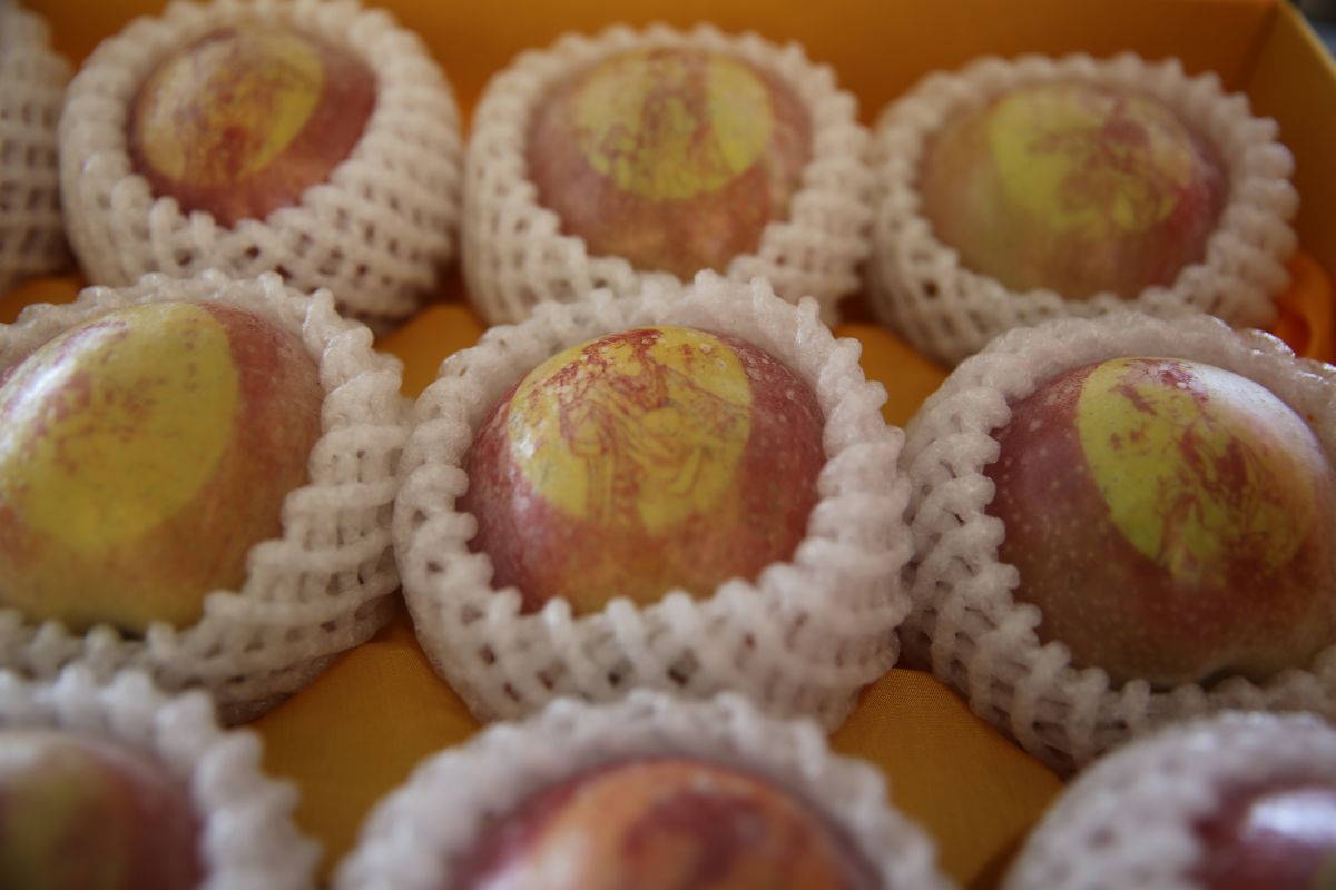 “功能性苹果需要进行3年的大田试验、示范,技术成熟后才能推广。目前,我们的富硒苹果、富锌苹果已进入市场,富钙苹果、灵芝苹果正在试验中。”王少斌说,他们不光试验推广市场潜力巨大的功能性苹果,还开发了多种高档文化苹果。文化苹果一直是市场的“宠儿”,果面上的“八仙过海”“金陵十二钗”“关公”“万荣笑话”等图样,极大地增强了果品的艺术性和观赏性。