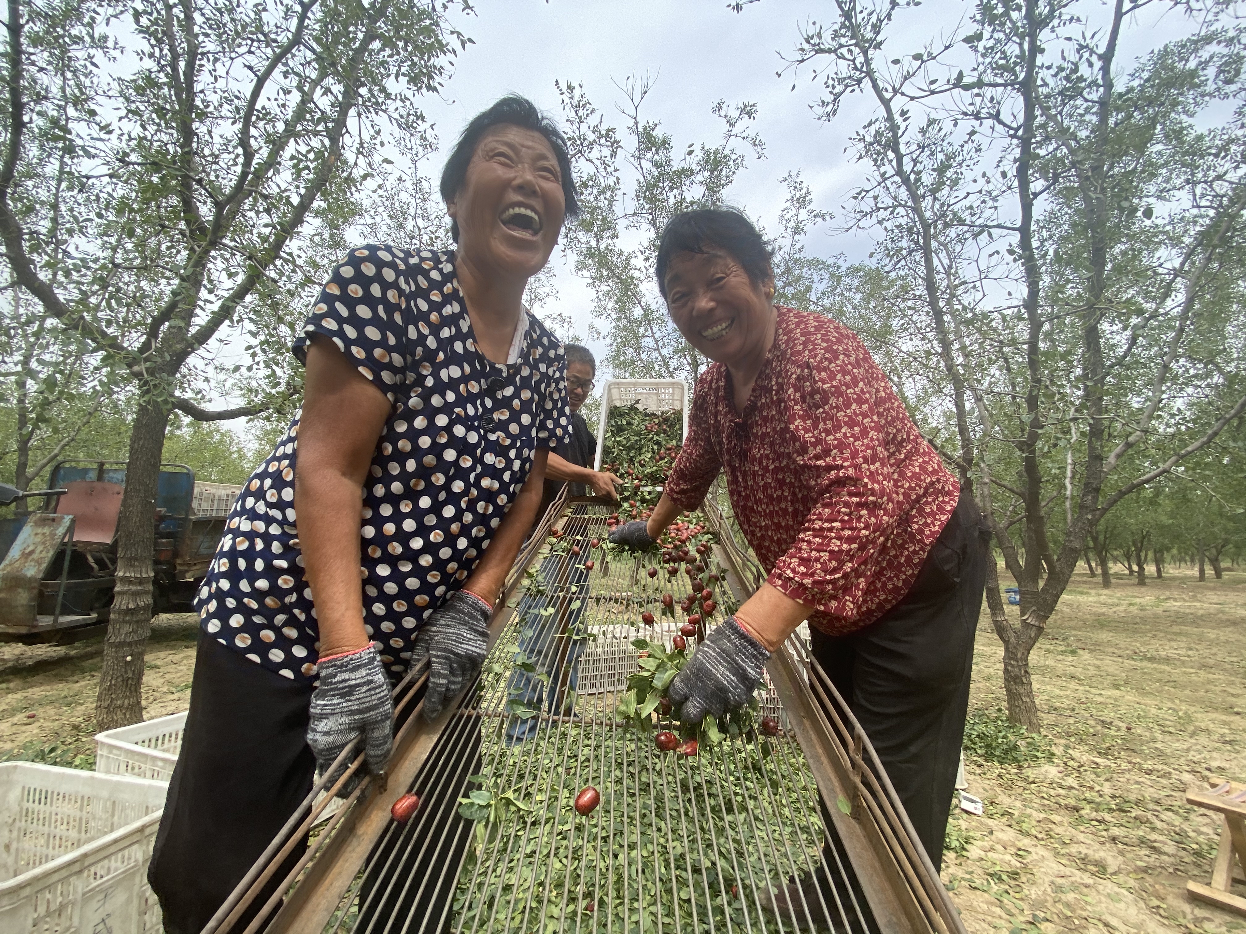▲稷山国家板枣公园内,枣农丰收乐开怀。 刘凯华 摄