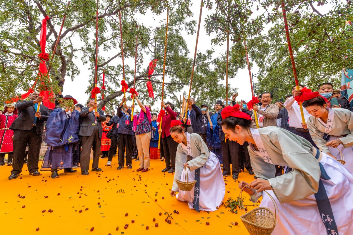 “开杆打枣是咱们稷山枣农庆丰收、迎小康的一个仪式,现在开杆打枣的这棵树,树龄、树高及长势都是咱们枣园里数一数二的,结出的枣又香又甜。”当地枣农王要齐说。相传明清时期,稷山枣农为感谢天赐佳果,在每年板枣成熟季节举行开杆仪式。为深入挖掘板枣文化、擦亮板枣品牌,推进林旅融合发展,2019年开始,稷山县恢复了这个传统仪式。