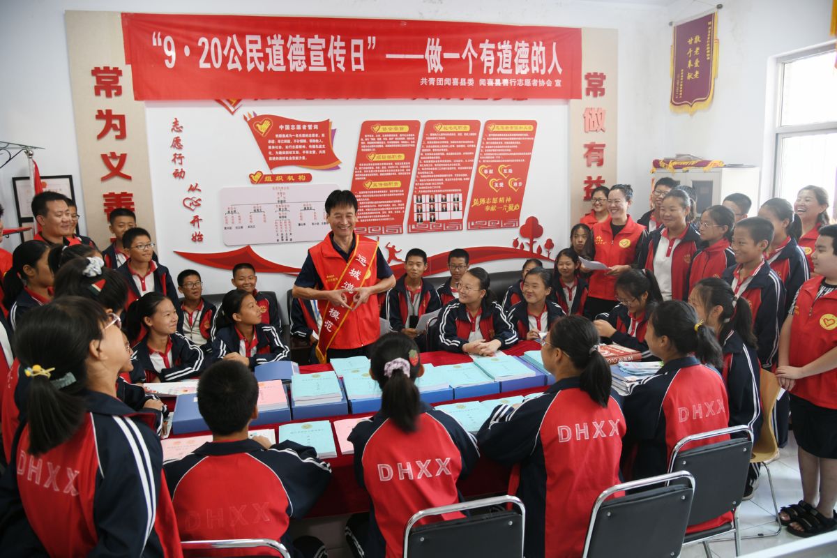 在2020年“9·20公民道德宣传日”宣传教育活动中,共青团闻喜县委、闻喜县善行志愿者协会组织道德模范开展了进机关、进校园、进乡镇、进社区巡讲活动,宣传道德模范的感人事迹和高尚品德,在全县营造了崇敬道德模范、学习道德模范、争当身边好人的浓厚氛围。 特约摄影 温徐旺 摄