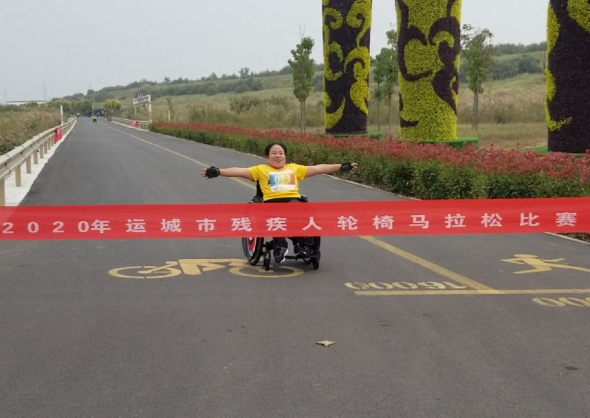 运城晚报讯(记者 范楚乔)9月27日,2020年运城市残疾人轮椅马拉松比赛在永济市伍姓湖湿地公园举行,来自各县(市、区)14支代表队的70余名选手参赛。