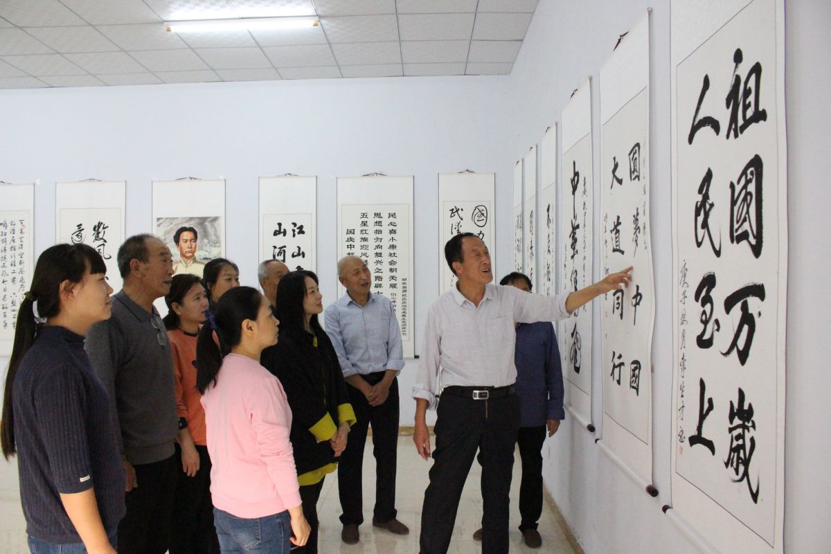 9月30日,闻喜县苗圃社区辖区居民,在参观迎国庆书画展。