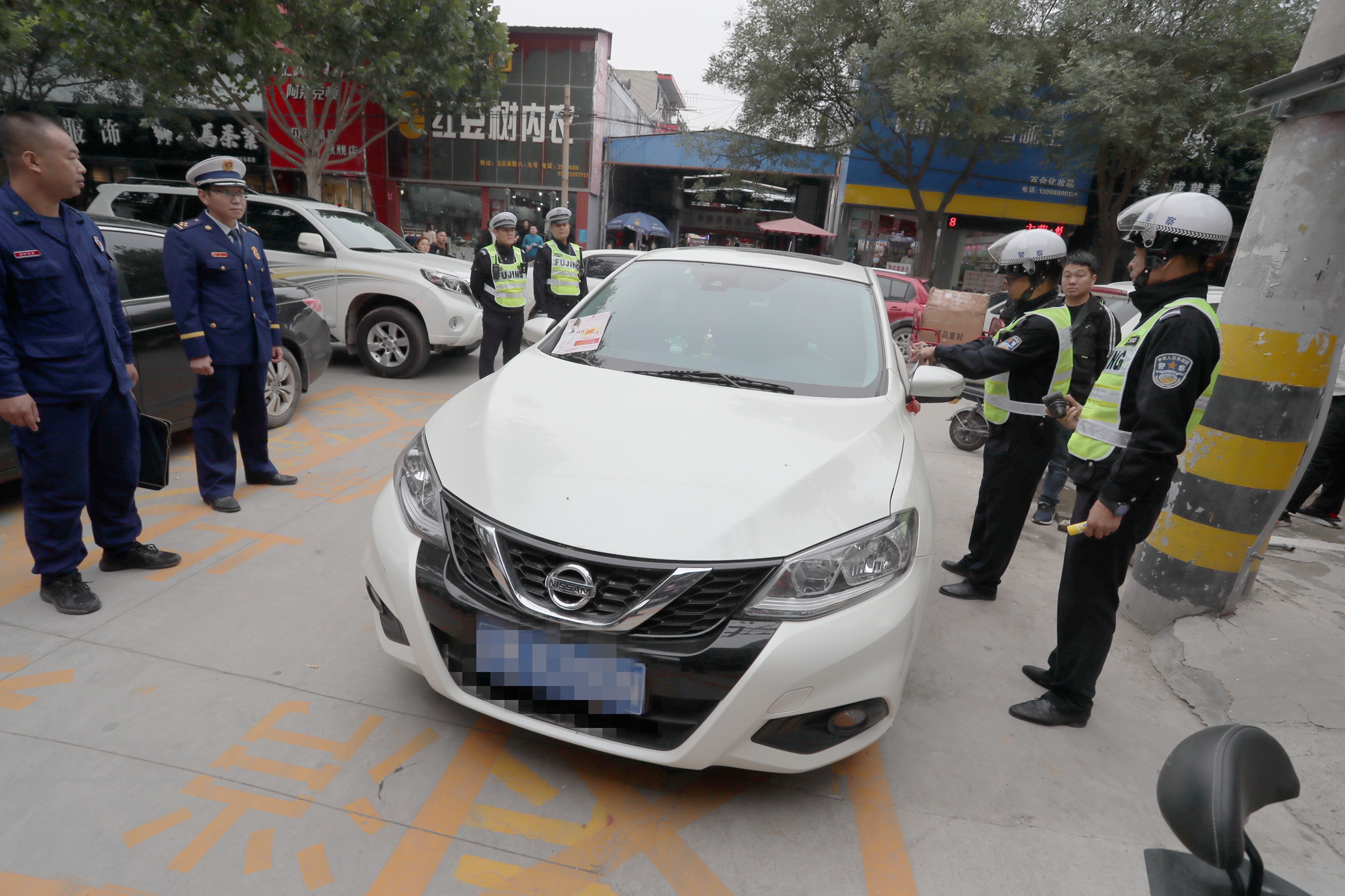 10月6日,盐湖交警大队安邑中队民警联合消防部门,来到市区禹都市场,对占用消防通道的车辆进行整治。