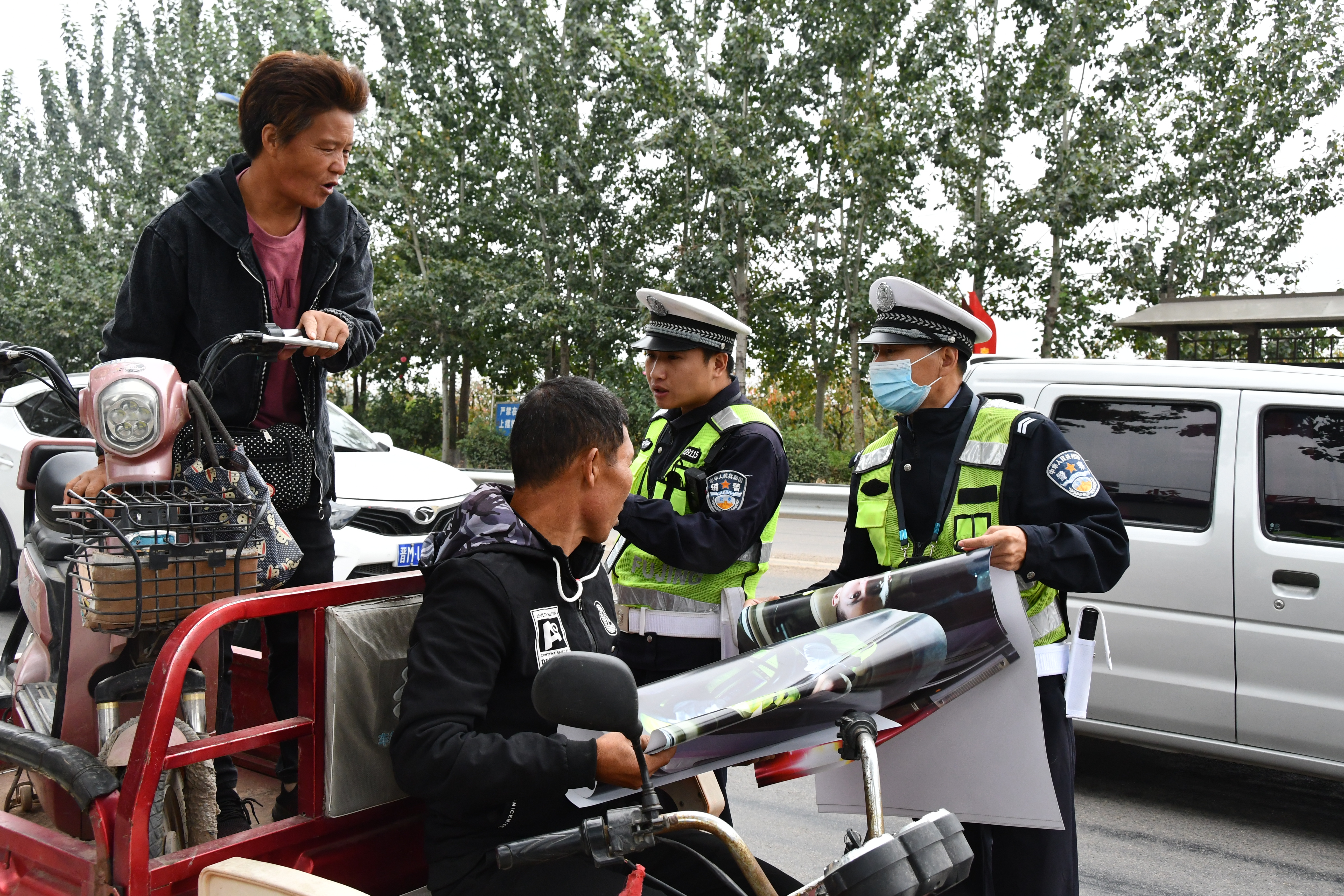 10月7日,万荣交警大队依托皇甫乡警保合作劝导站,联合农村交通安全劝导员,对不文明出行的群众进行劝导教育。