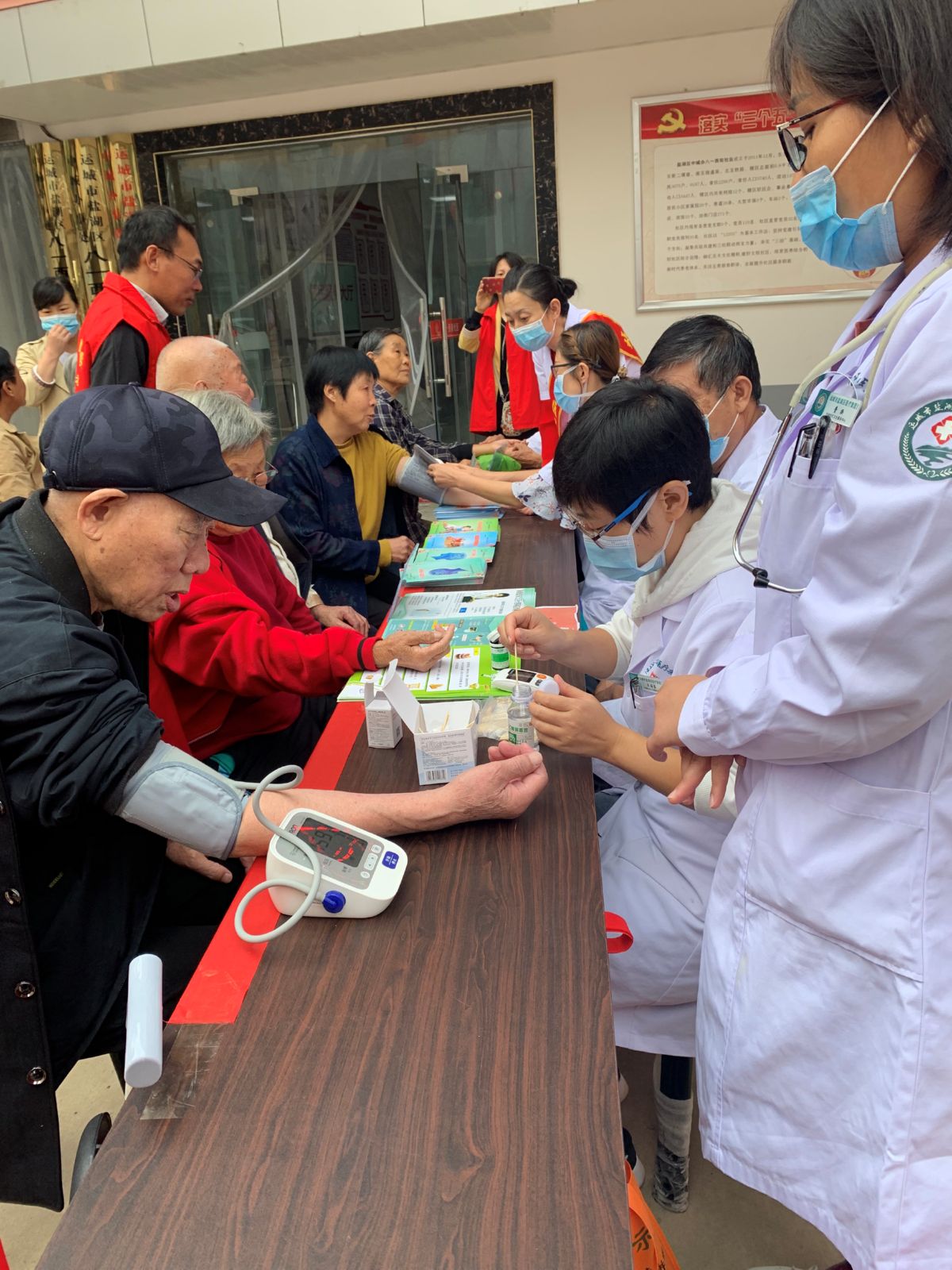 近日,盐湖区中城社区服务中心的医护人员在为老年人测量血压、血糖。