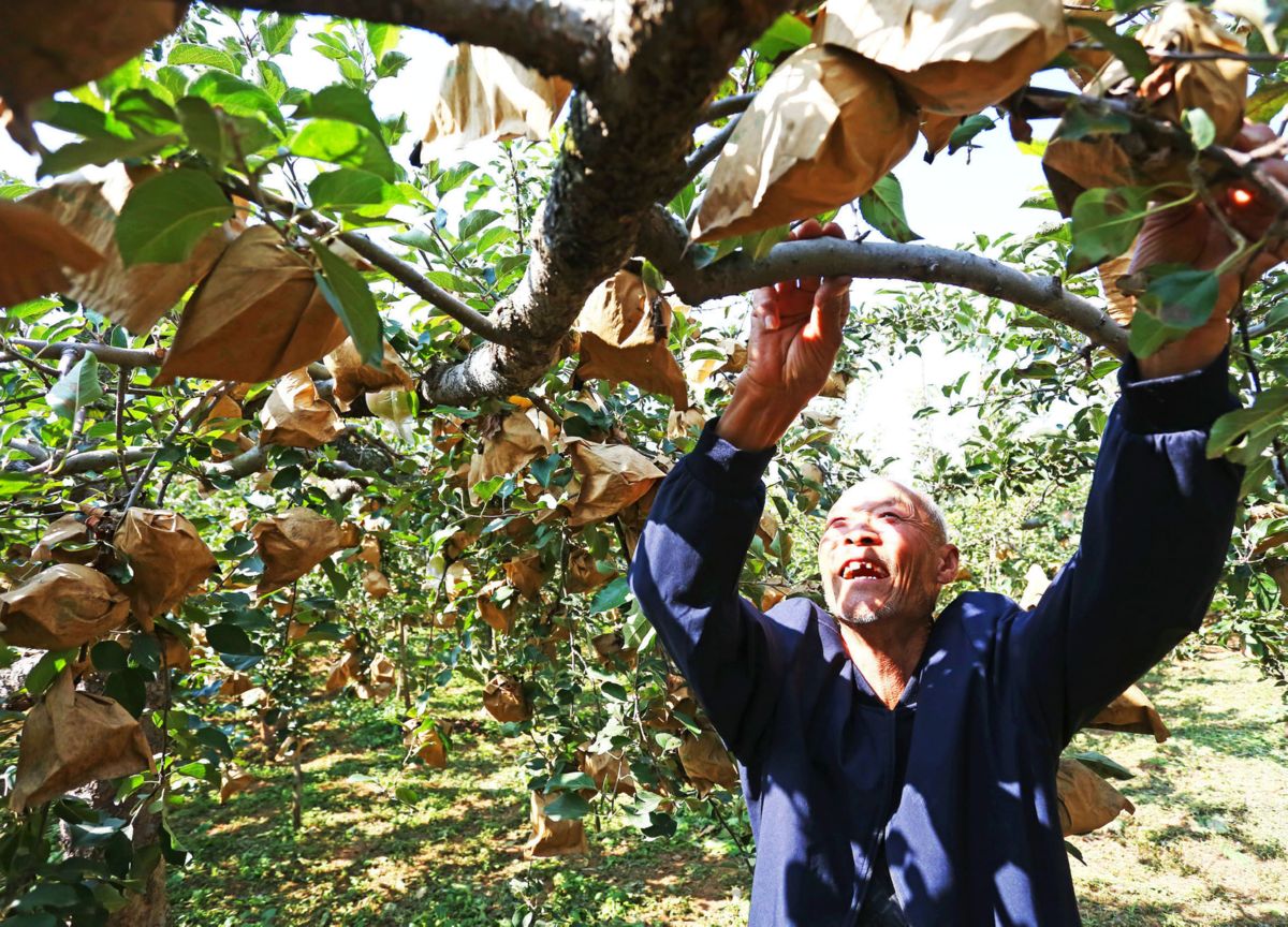 张则天于1992年开始种植6亩红富士苹果,坚持适时疏花、疏果,科学利用水肥,青果套袋防病,田间铺膜补光增色,通过科学管理年年获得好收成。今年6亩苹果预计可产两万余公斤,目前已被果商提前订购,收入可达5万余元。 特约摄影 鲁国林