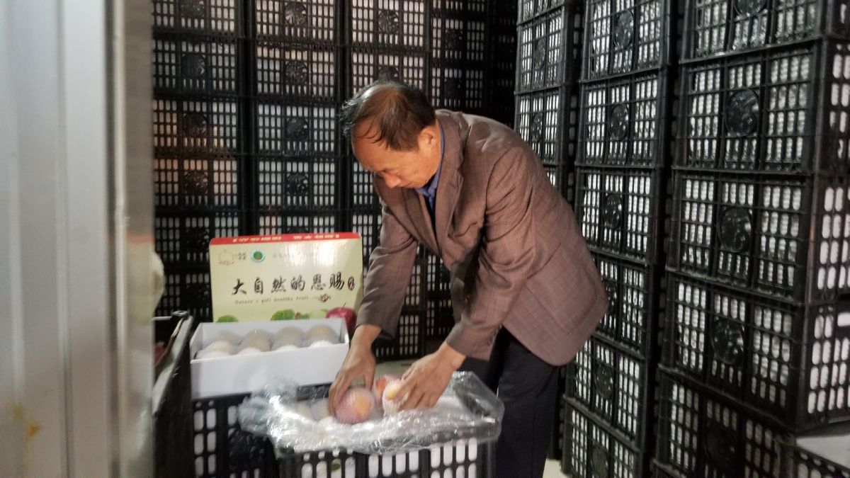 ▲薛占喜介绍即将参展的苹果 范楚乔 摄