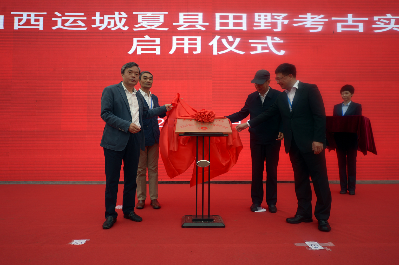 在当天的仪式上,宋新潮、张复明、张希、吉大田野考古教师代表朱永刚共同为“吉林大学考古学院山西运城夏县田野考古实践教学基地”揭牌。