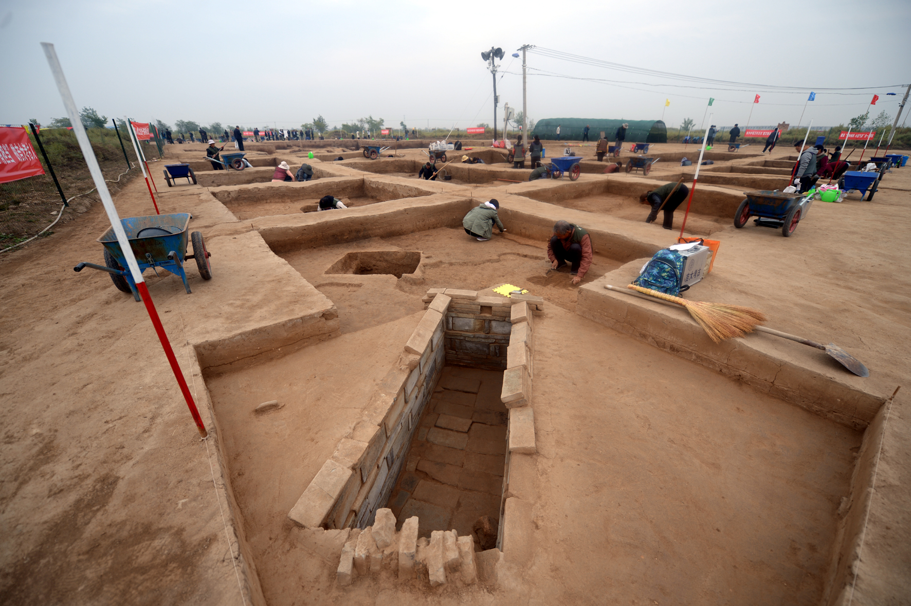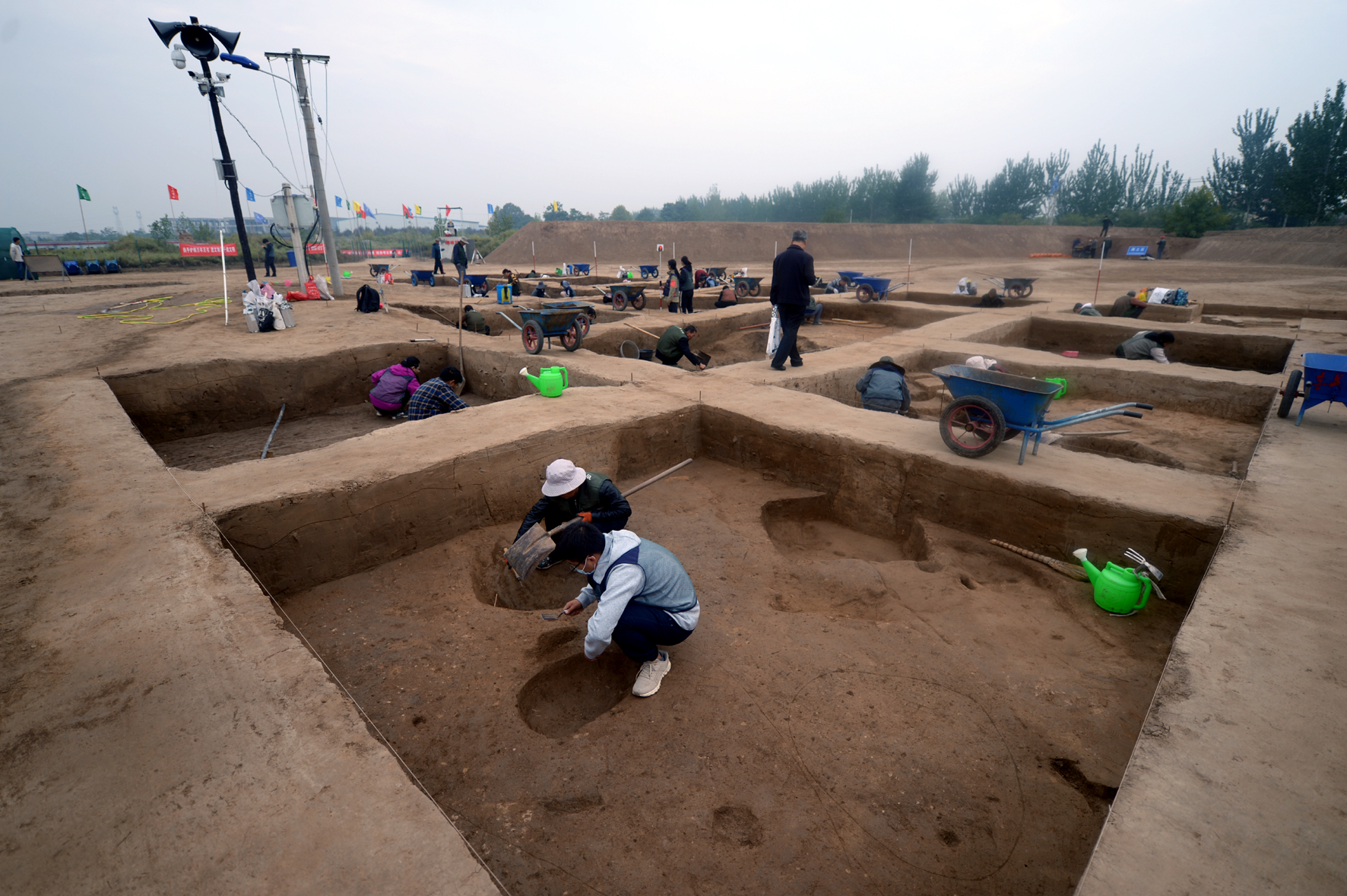 10月10日,在夏县裴介镇师村仰韶早期聚落遗址发掘现场,工作人员有条不紊地进行作业。记者 冯革才 摄