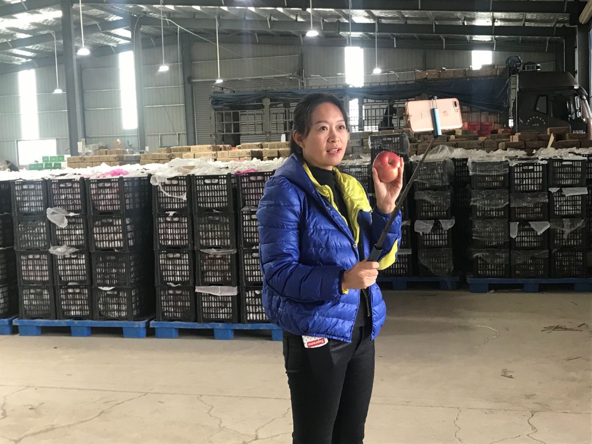 王研亲从事运城果品电商已经五六年了,自从抖音开通直播平台后,她就负责在抖音上直播销售水果,现在不光有固定的粉丝,还认识了很多从事果品批发的“大户”。她每天东奔西跑,负责为大家寻找又好吃又实惠的水果。说话间,王研亲又将直播架搬到了另一条流水线旁边:“咱们这儿号称北方百果园,什么品种都有。这个就是我们的玉露香梨,非常薄脆,我很轻松就能把它捏碎,大家看看……”