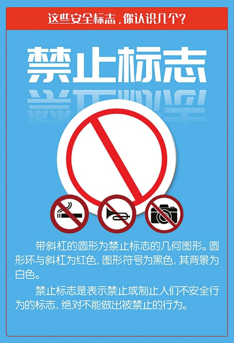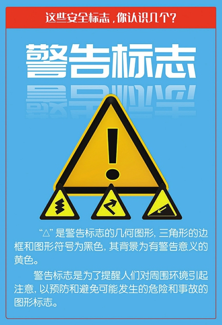 安全生产无小事,在生产过程中要时刻提高警惕,严格执行安全规章制度。掌握安全生产知识,应学会识别安全标志。安全标志由安全色、几何图形和图形符号构成,分为禁止标志、警告标志、指令标志和提示标志四类。(王伟婷 杨殊宇)