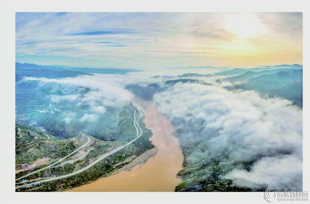 10月17日,在平陆县黄河岸边拍摄的云海黄河美景。当日,受天气降雨影响,位于平陆县和河南省三门峡市的晋豫峡谷出现云海美景,天上飘浮的云海与地下峡谷奔腾的黄河交相呼应,形成一幅自然美景,美不胜收。(记者 薛俊 摄)