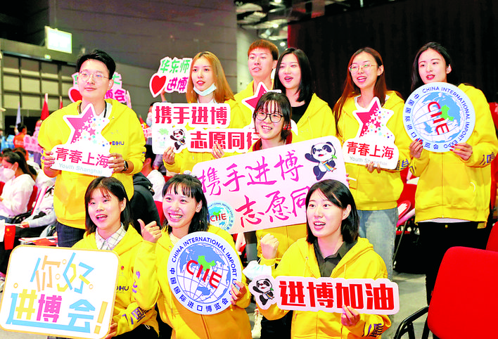 据介绍,截至目前,第三届进博会已招募4844名志愿者,志愿者将完成基础培训、重点培训和岗位实训等。在这4800多人中,曾经参与往届进博会志愿服务的共671人,曾有过新冠肺炎疫情防控志愿服务经历的志愿者有871人。将有3700多名志愿者服务于现场引导咨询、联络接待、新闻宣传、展会注册、迎送保障、数据统计、行政保障、医疗应急救援、防疫健康宣传等岗位。其中防疫健康宣传岗是今年为妥善做好疫情防控新设的志愿者岗位。(记者 刘颖 摄)