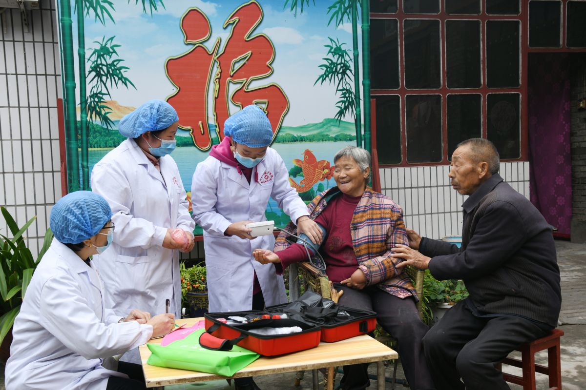 10月20日,闻喜县医疗集团郭家庄镇卫生院医务人员到郭家庄村为建档立卡贫困户检查身体。