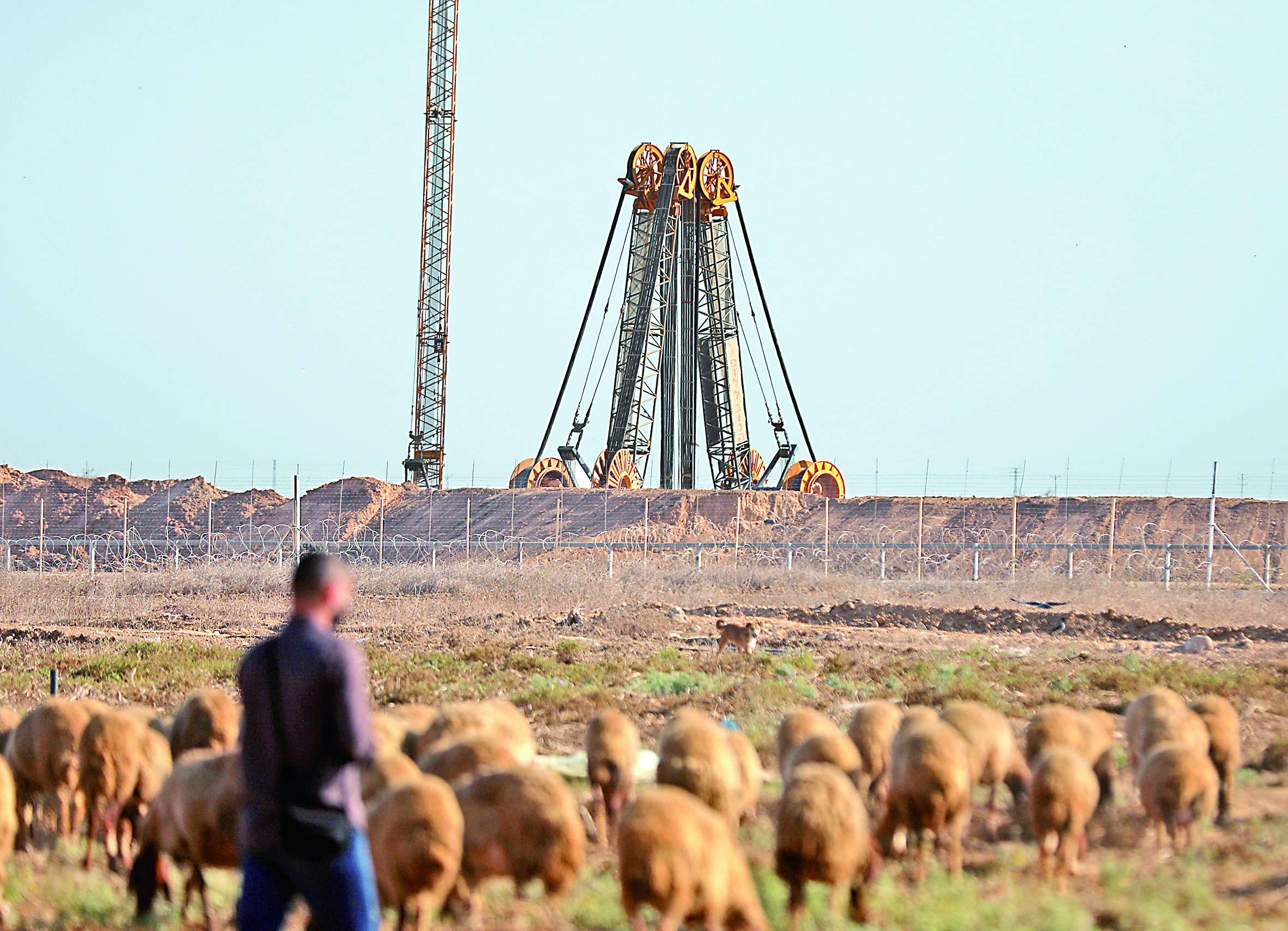 10月21日,在以色列边境地区,钻机在新发现的地道附近工作。以色列军方20日证实,发现一条由加沙地带通往以色列边境的地道。(亚西尔 摄)