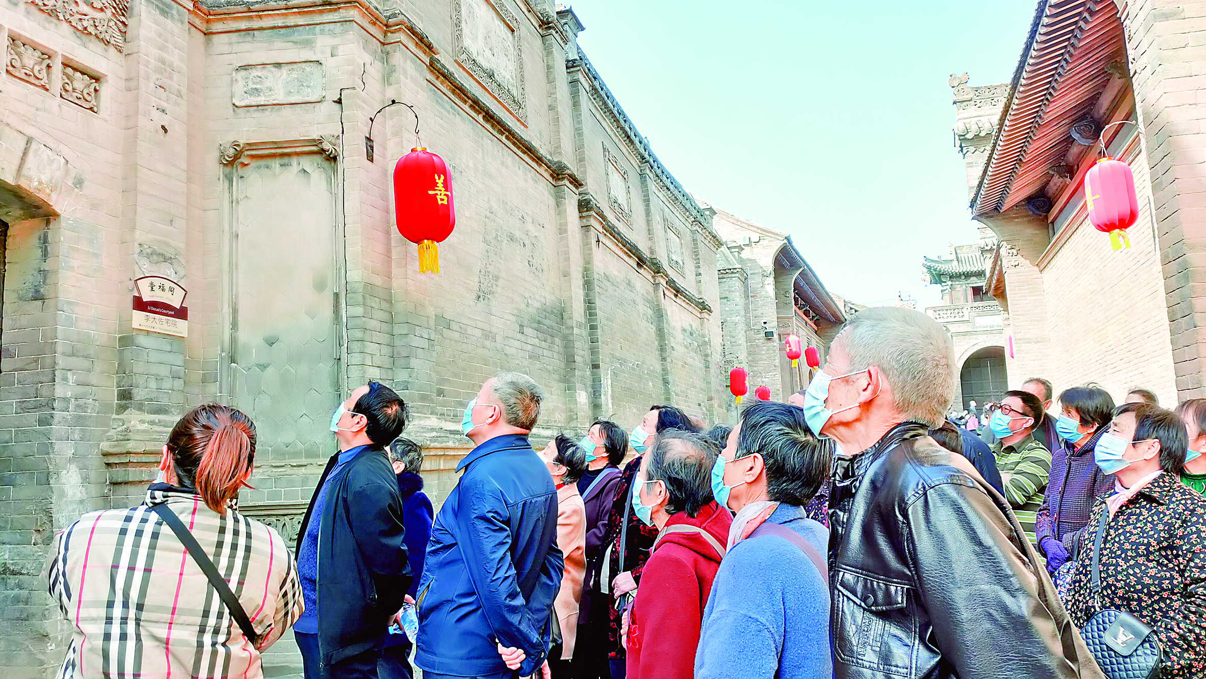 老人们在导游的带领下参观李家大院 陶登肖 摄