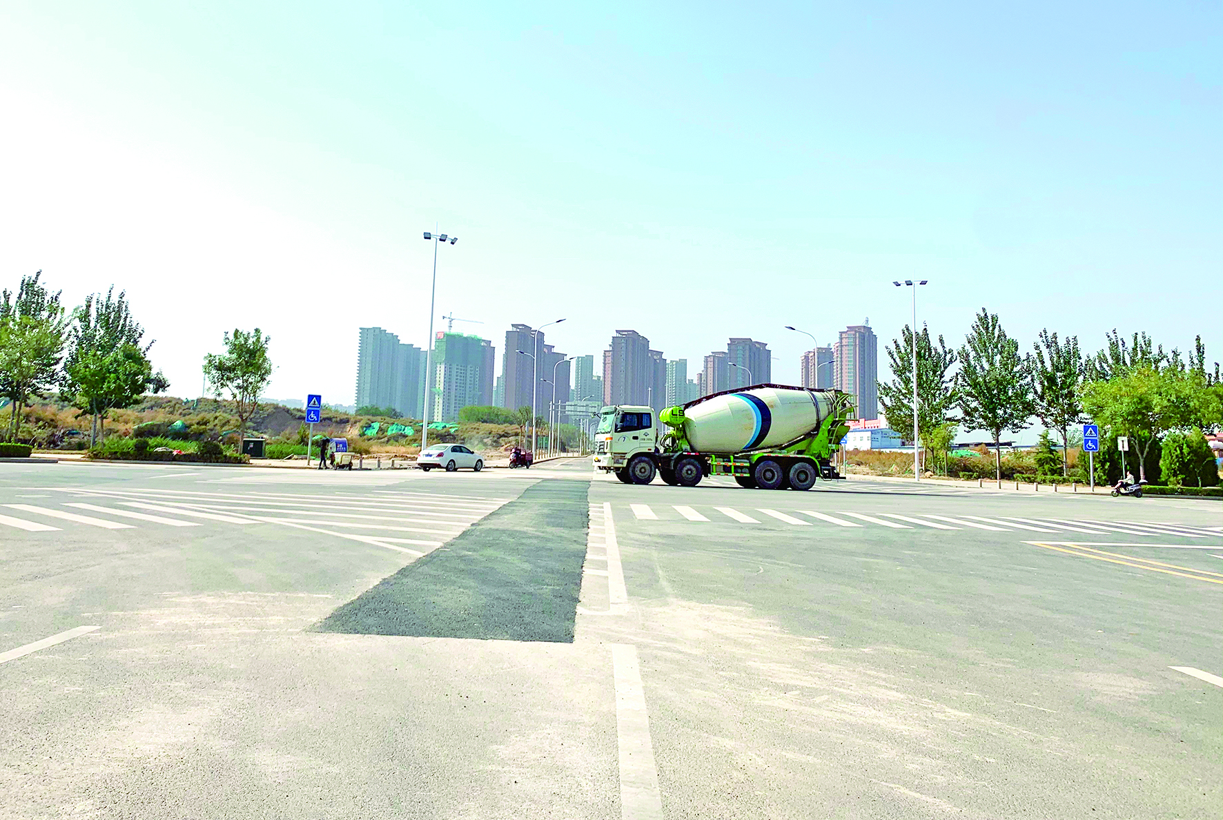 当天,在市区安邑东路,施工人员在对路面进行硬化。据施工现场相关负责人介绍,东部新区集中供热全覆盖工程管网安装工作已全部结束,路面硬化工作于当日下午结束。届时,市区红旗东街、河东东街、安邑东路等施工路面恢复正常通行。至此,东部新区集中供热全覆盖工程全面完工,且具备注水运行条件。