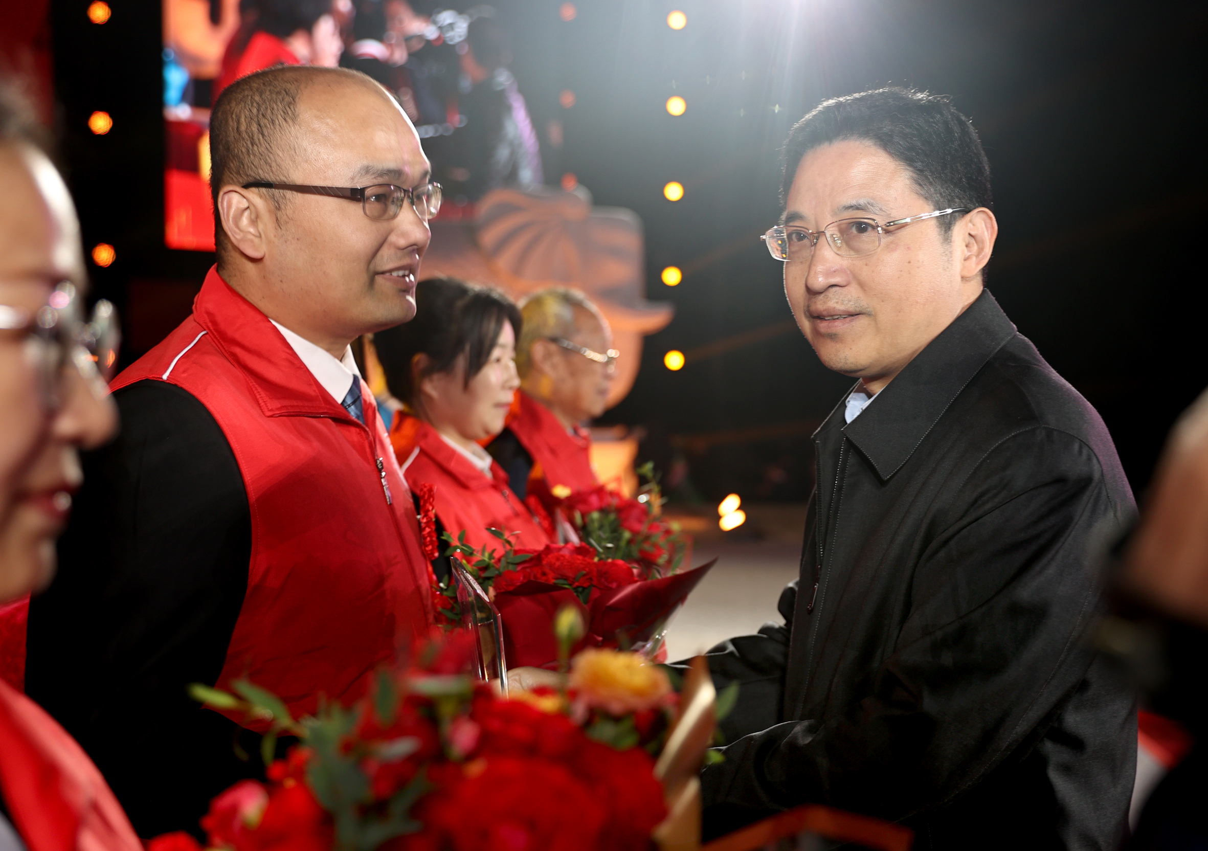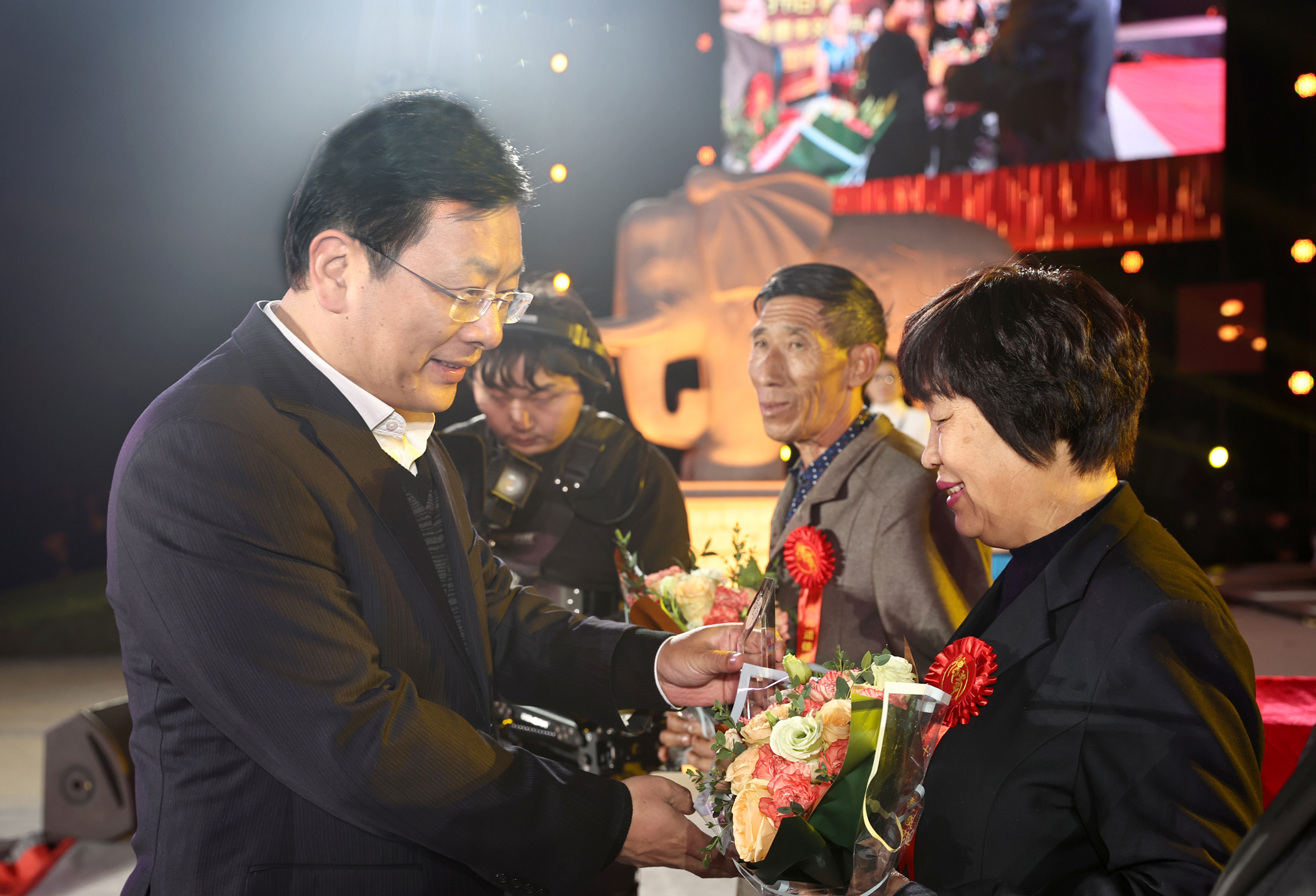 夜色中的古柏广场流光溢彩,欢乐喜庆。开幕式晚会分为“华夏之根·德孝”“大河之东·家乡”“星云之势·时代”“忠诚担当·祖国”4个篇章,用特殊形式弘扬德孝文化、致敬时代楷模。先进典型颁奖典礼穿插于整场晚会。在现场观众热烈的掌声中,“最美孝顺媳妇”“最美志愿者”“最美道德模范”等先进典型获得者先后登上舞台,接受现场观众的真挚礼赞。沈建国、丁小强、储祥好、杨勇、安雅文、张润喜分别为获奖者颁发奖杯。获奖者或孝老爱亲,崇德扬善;或不计得失,无私奉献;或勇于开拓,奋发有为,在平凡的岗位上,对德孝文化作出了最好的注解和发扬。
