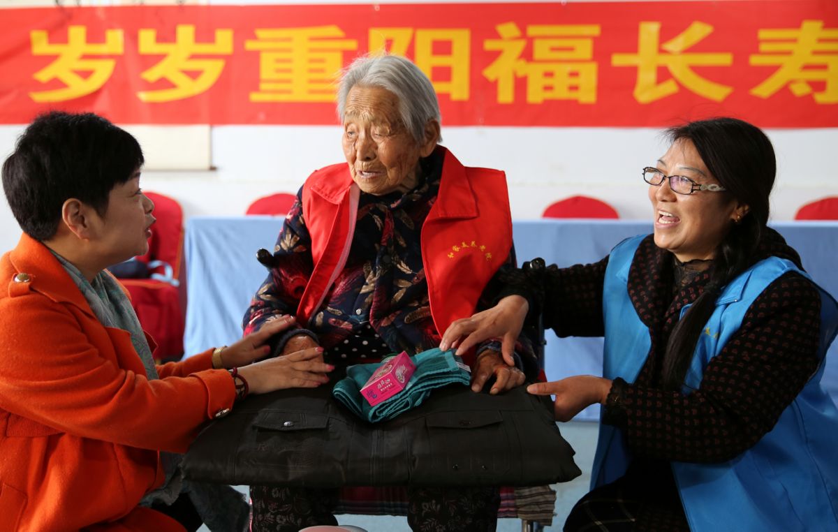 ▲志愿者与老人拉家常 张国平 摄