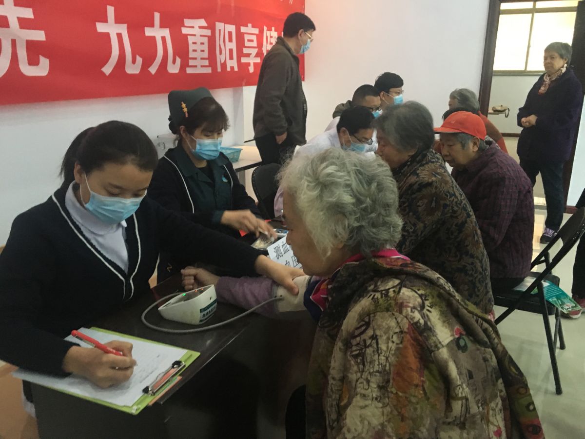 活动现场,医护人员为前来就诊的老人测血压、血糖、心电图和检查眼底等,根据老人的健康情况提出养生建议,向他们讲解常见病的预防和注意事项。由于排队的老人比较多,社区工作人员搬来板凳让老人休息。