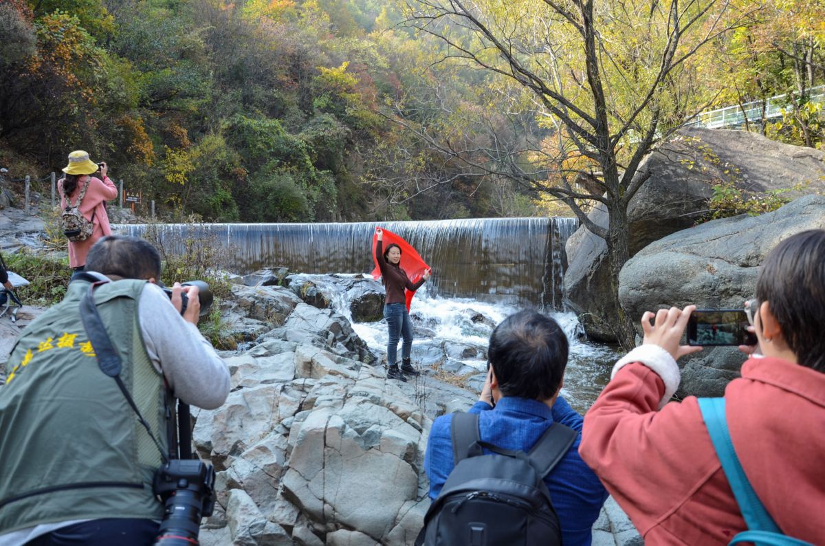 ▲10月25日,运城市游摄天下大课堂的学员们在垣曲望仙大峡谷创作拍摄。