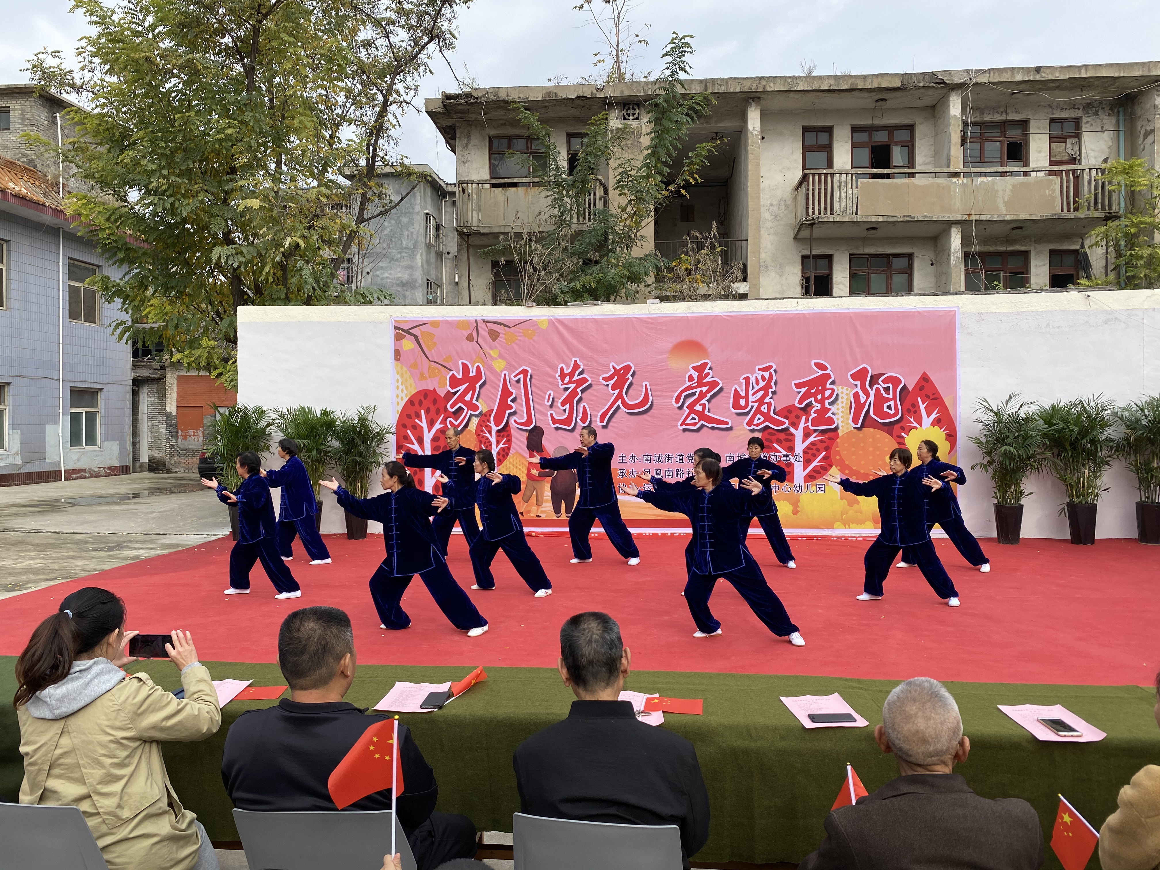 活动中,社区舞蹈队带来的扇子舞《田园上的欢歌》,拉开了演出帷幕,男声独唱《感谢》、42式太极拳、二胡独奏《送粮》等节目赢得老人们的阵阵掌声,南城中心幼儿园师生表演的舞蹈《谢谢您》将整场演出带入高潮。