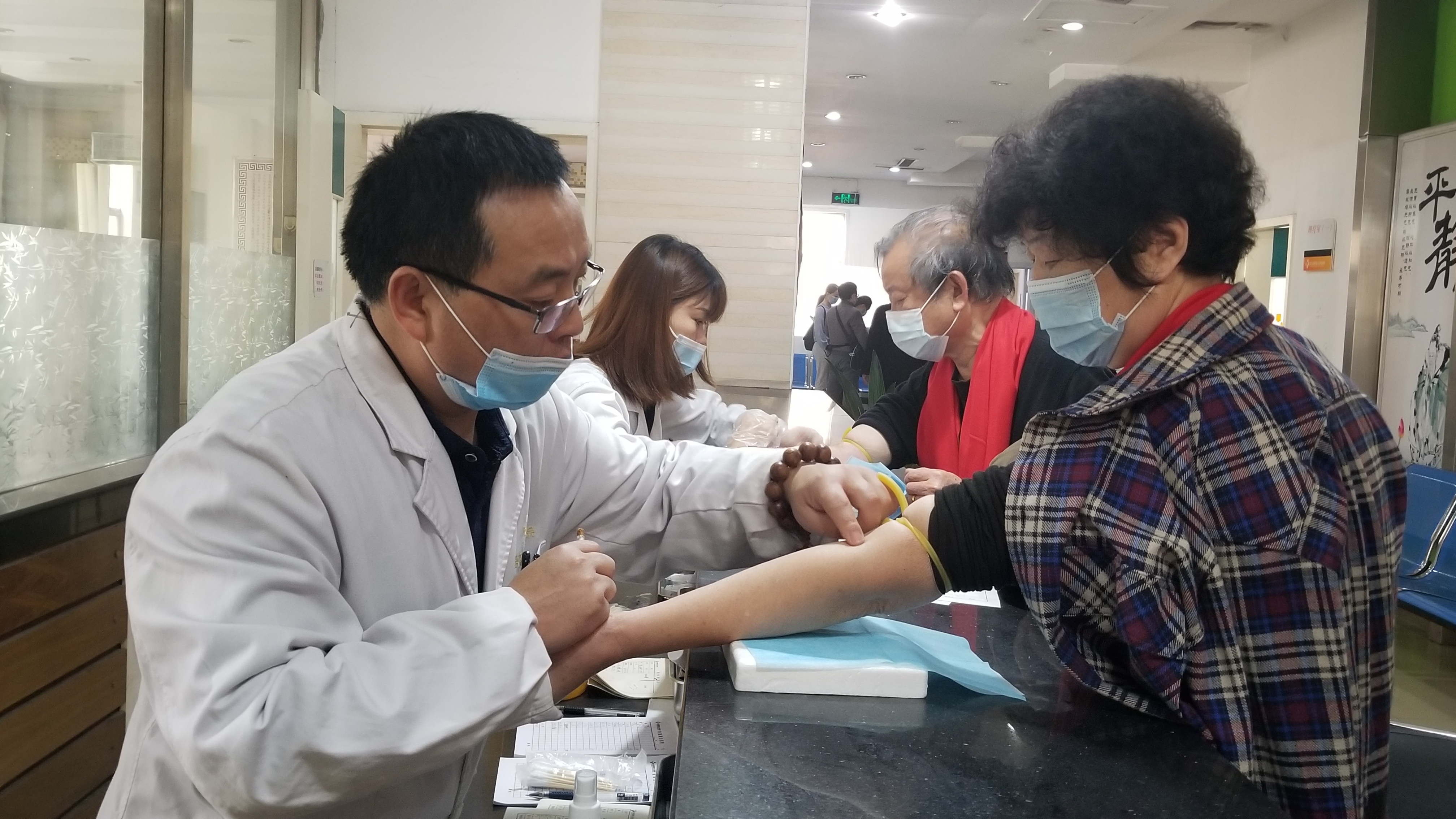 ▲医护人员给居民测血糖 樊亚楠 摄