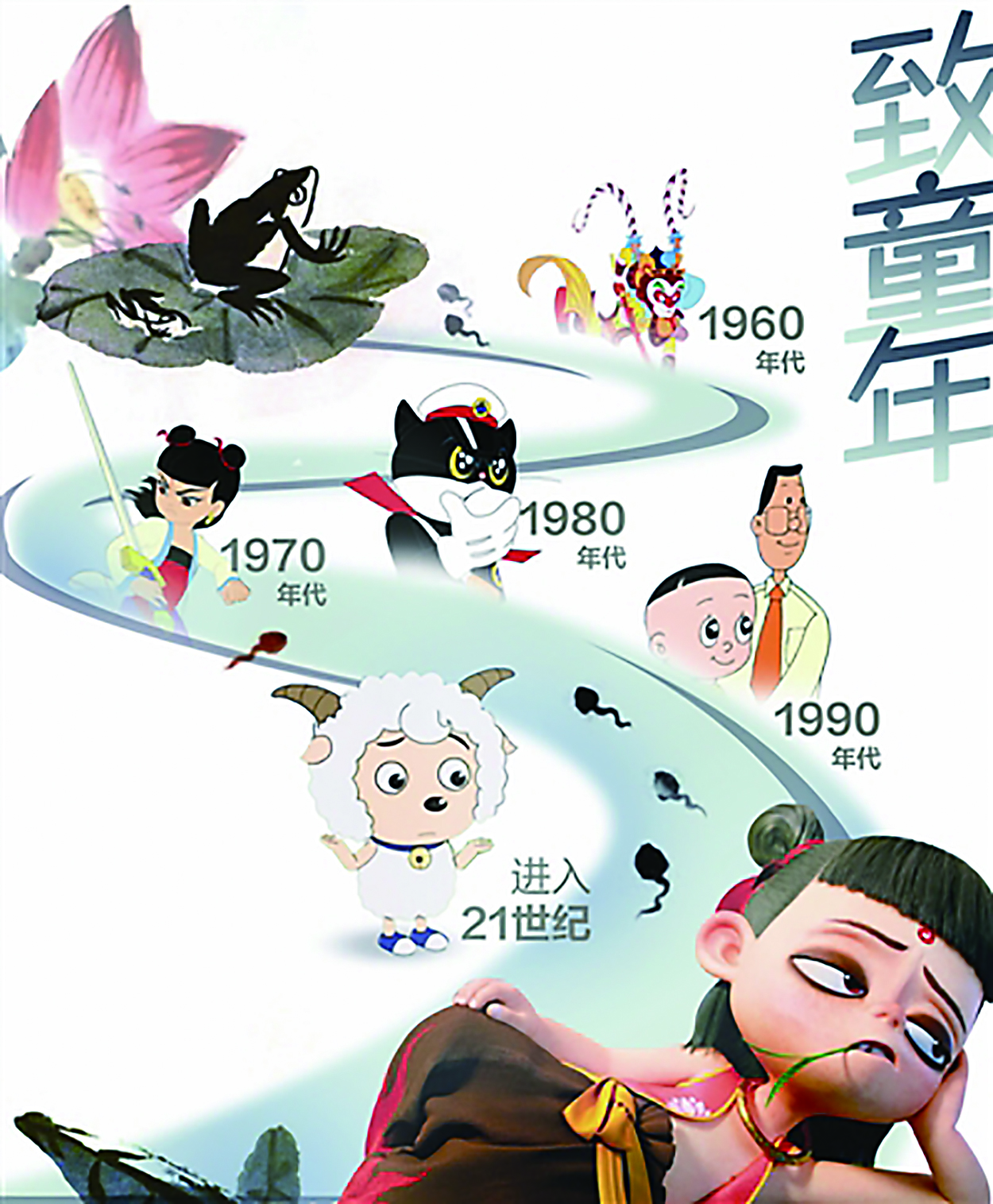 20世纪五六十年代,中国动画,也就是我们通常说的美术片,迎来第一个高潮。其中最具代表性的就是《小蝌蚪找妈妈》,这是我国第一部水墨动画片。这部首播于1961年的经典作品,深深影响了一代又一代人。到了八九十年代,国产动画迎来井喷式发展,《黑猫警长》《舒克和贝塔》《三个和尚》等一大批经典,都在国产动画史上留下浓墨重彩的印记。进入千禧年后,国产动画更是有了质的飞跃,最典型的就是《哪吒之魔童降世》,凭超50亿元票房登上中国电影票房影史第二位。