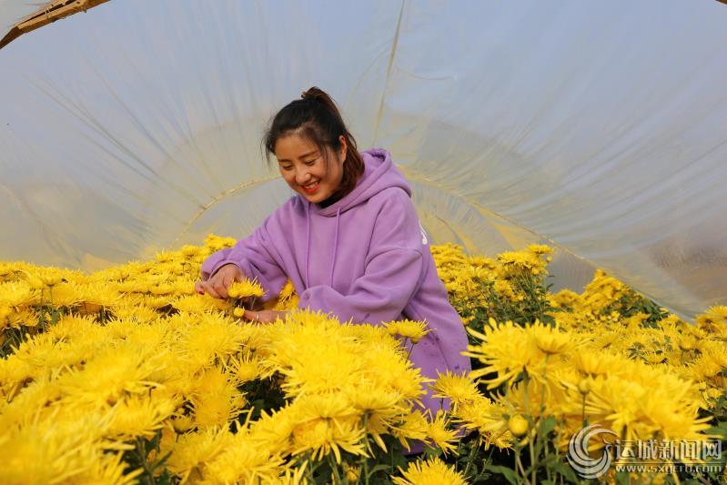 ▲10月29日,夏县埝掌镇埝掌村高峰家庭农场的员工在采摘金丝菊。 该家庭农场流转土地370亩,在抓好小麦、玉米生产的同时,种植茶用金丝菊、北京菊和牡丹等,产品远销广州、福建等地,每年可吸纳周边100多名村民务工。 张秀峰 摄