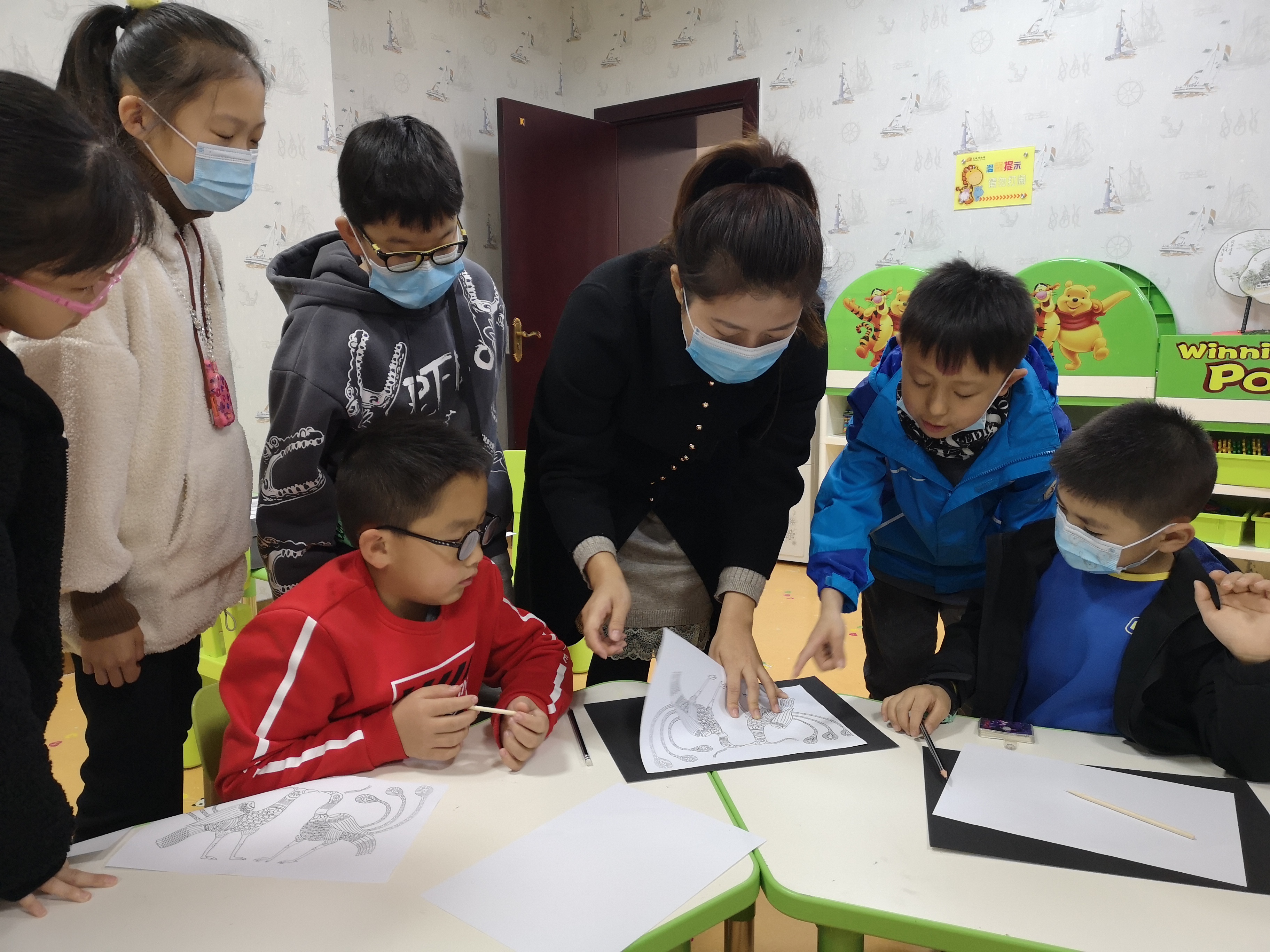 博物馆工作人员指导孩子们刮画 杜磊 摄