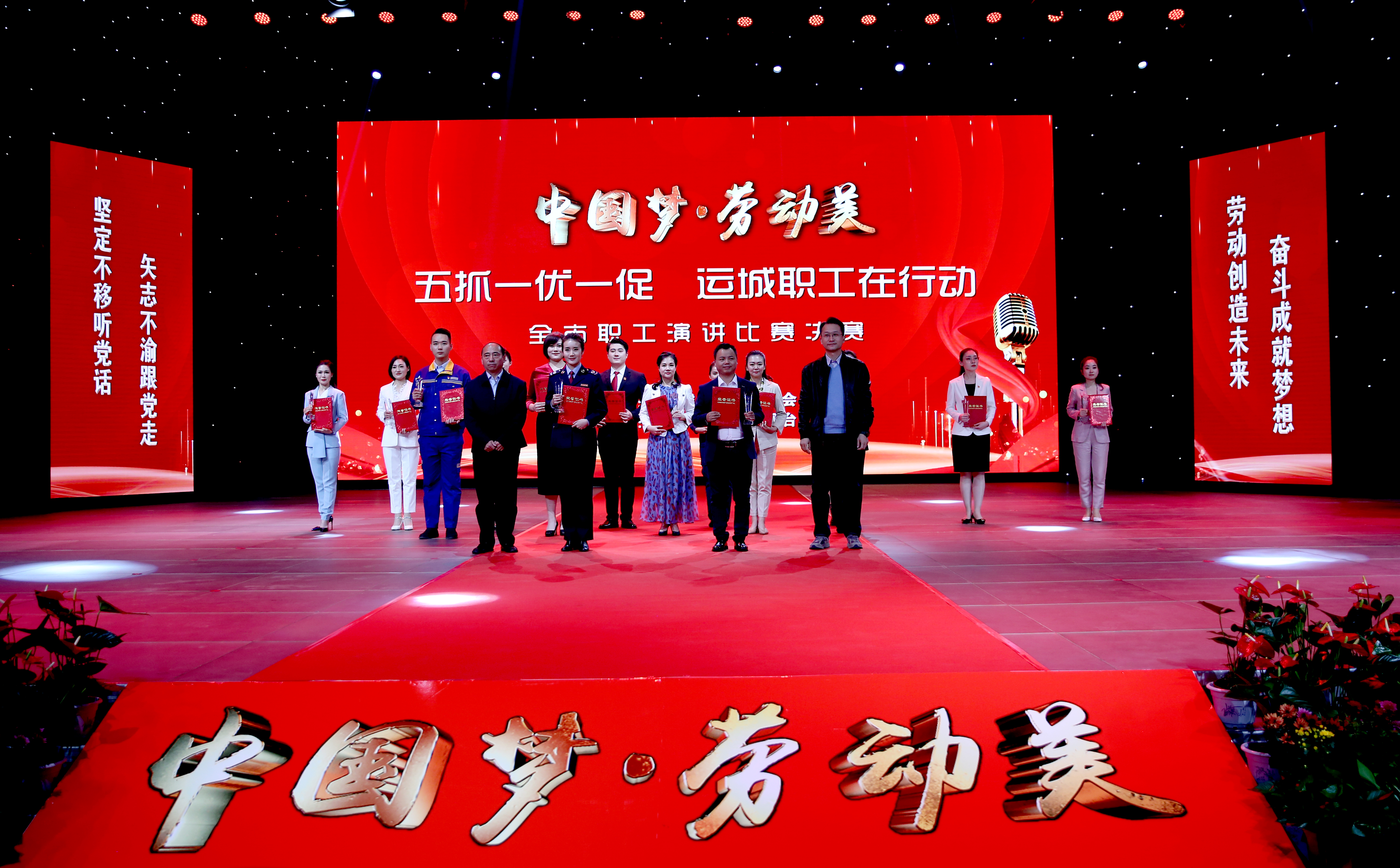 10月30日,中国梦·劳动美“五抓一优一促,运城职工在行动”全市职工演讲比赛决赛,在运城广播电视台演播大厅举行。经过层层选拔,共有15名选手进入决赛,最终国家税务总局运城市税务局选手王若元演讲的《税心托举中国梦》、绛县总工会选手宋杰演讲的《用爱守护小康路上的每一个梦想》荣获一等奖。图为演讲比赛决赛颁奖现场。 记者 张国平 摄