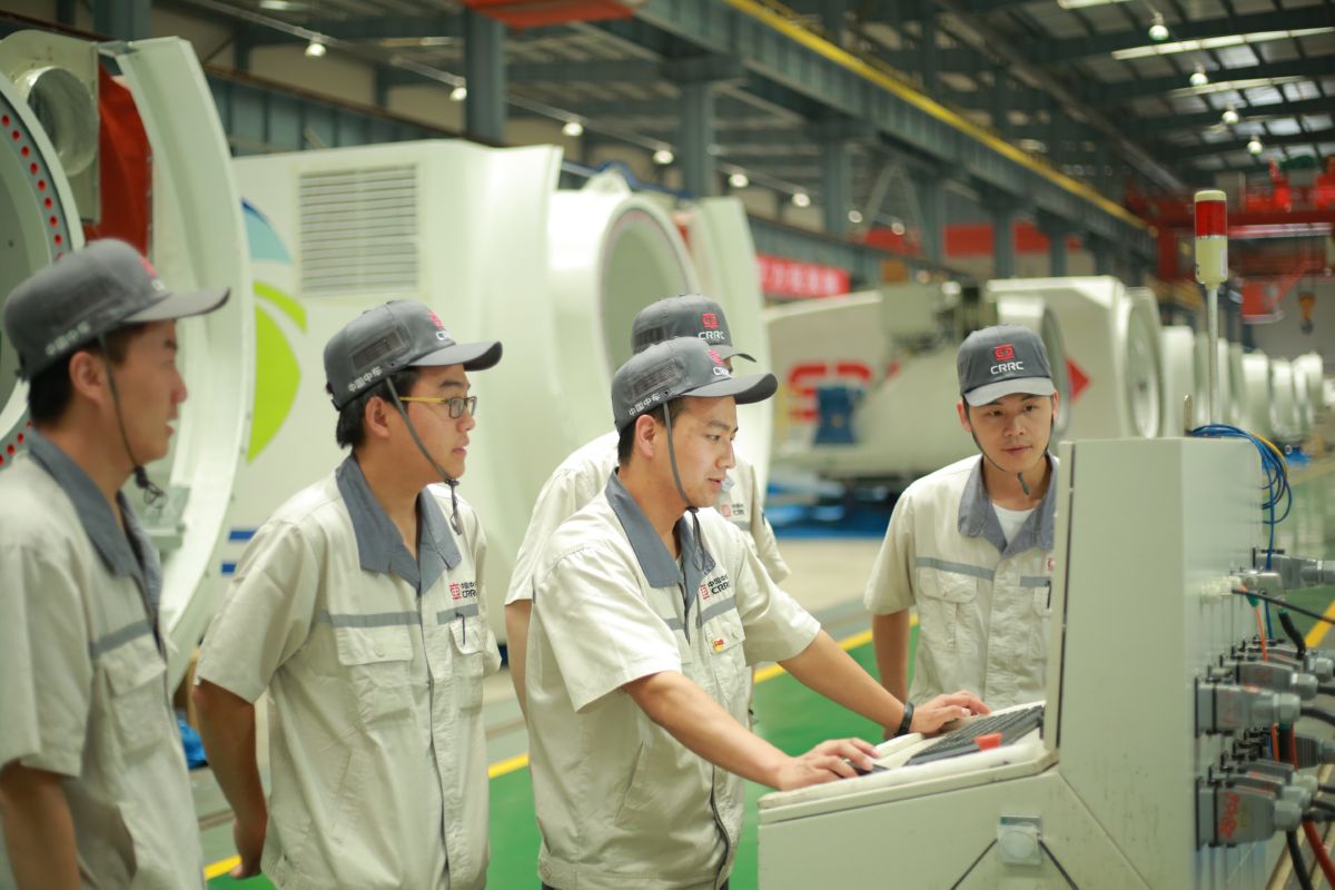中车永济电机工作人员在进行风力发电机测试 (资料图片)