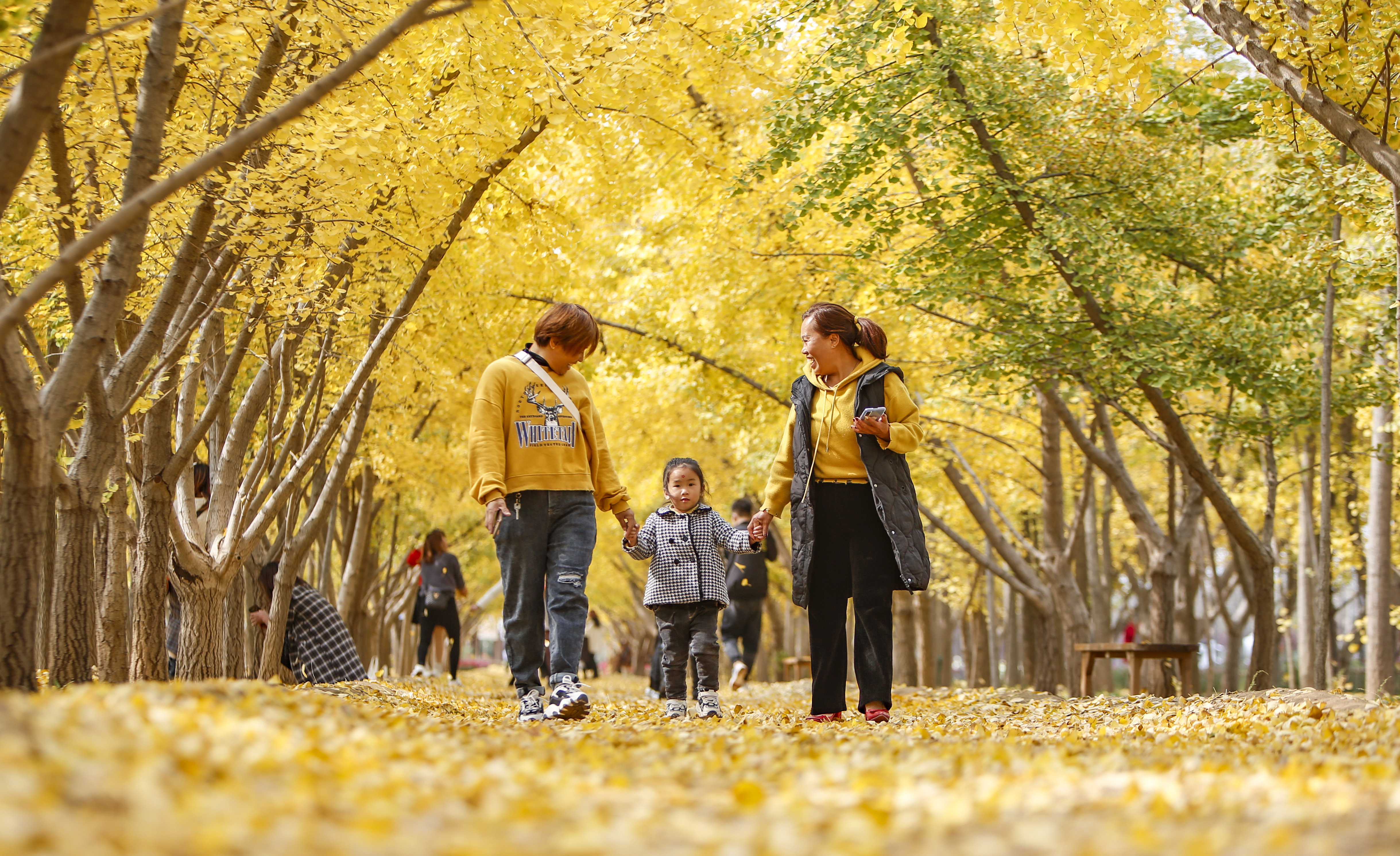 10月30日,游客在临猗县三管镇三管村的“银杏源”游玩。